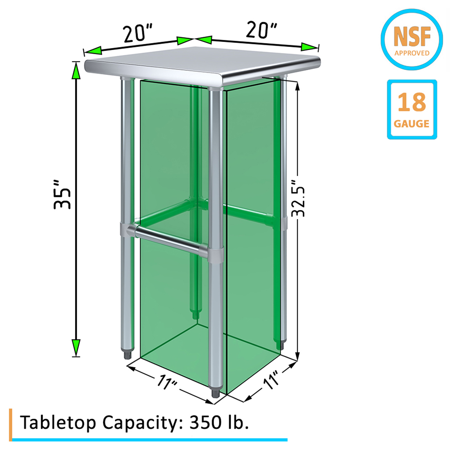 Measuring 20 inches by 20 inches, this work table offers a compact footprint that fits seamlessly into smaller spaces while still providing ample workspace for your projects. The clean, modern design complements any setting, adding a touch of professionalism to your environment. Whether you’re slicing ingredients in a busy kitchen, assembling components in a workshop, or conducting experiments in a lab, this stainless steel work table is a reliable and stylish addition to your workspace.