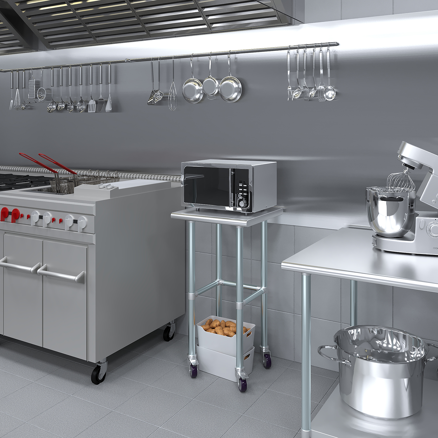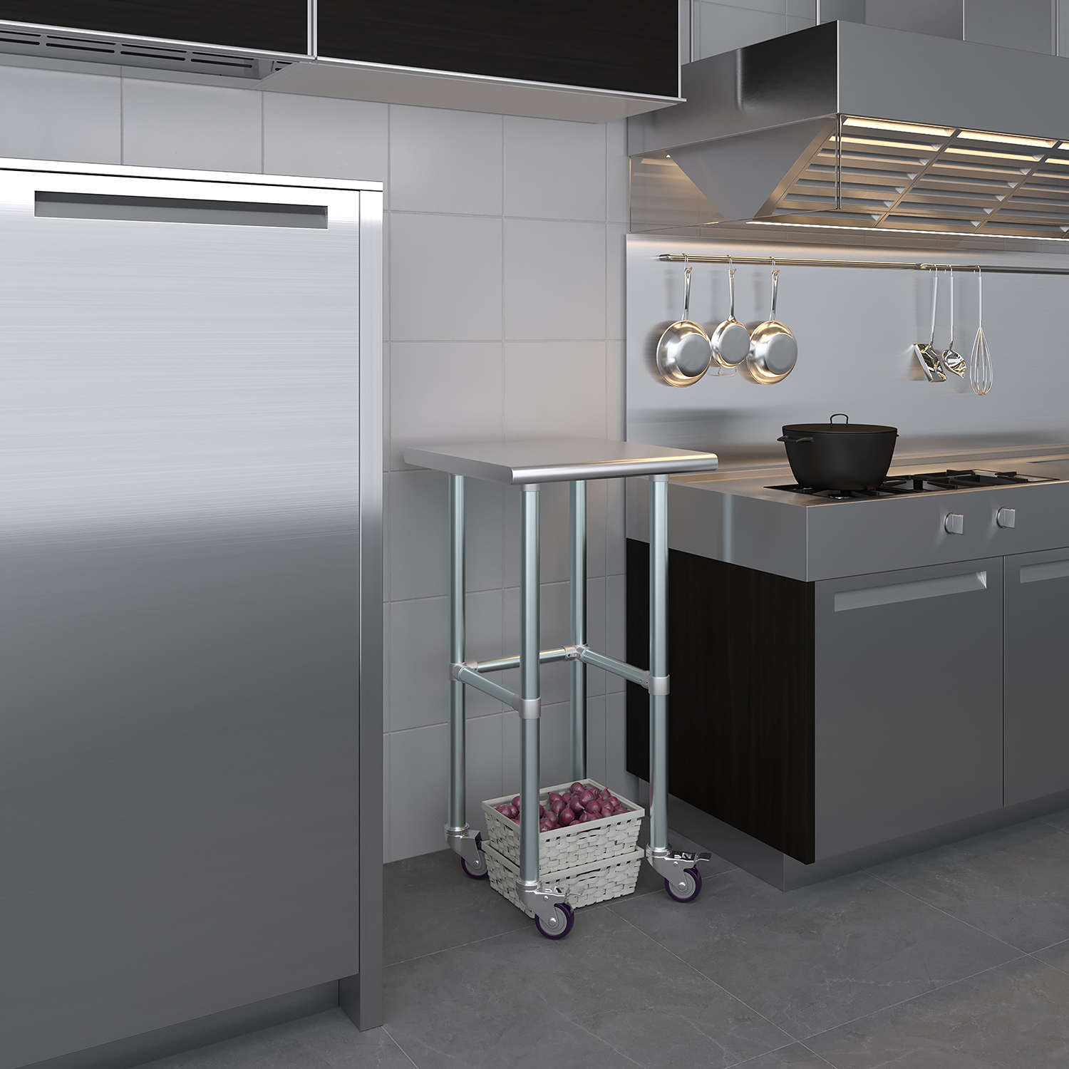 Optimize your workspace with the 20″ x 20″ Stainless Steel Work Table featuring an open base and a set of four wheels for enhanced mobility and versatility. This work table is constructed from 18GA/430 stainless steel, ensuring a durable, easy-to-clean surface. Designed for demanding environments such as commercial kitchens, laboratories, and workshops, this table guarantees long-lasting performance and reliability.