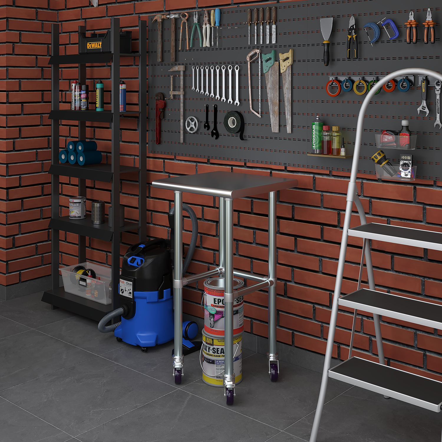 The compact dimensions of 20 inches by 20 inches make this work table an excellent choice for smaller spaces while still providing a robust and functional workspace. Despite its compact footprint, the table offers ample space for a variety of tasks, from food preparation and assembly work to scientific experiments and crafting projects.