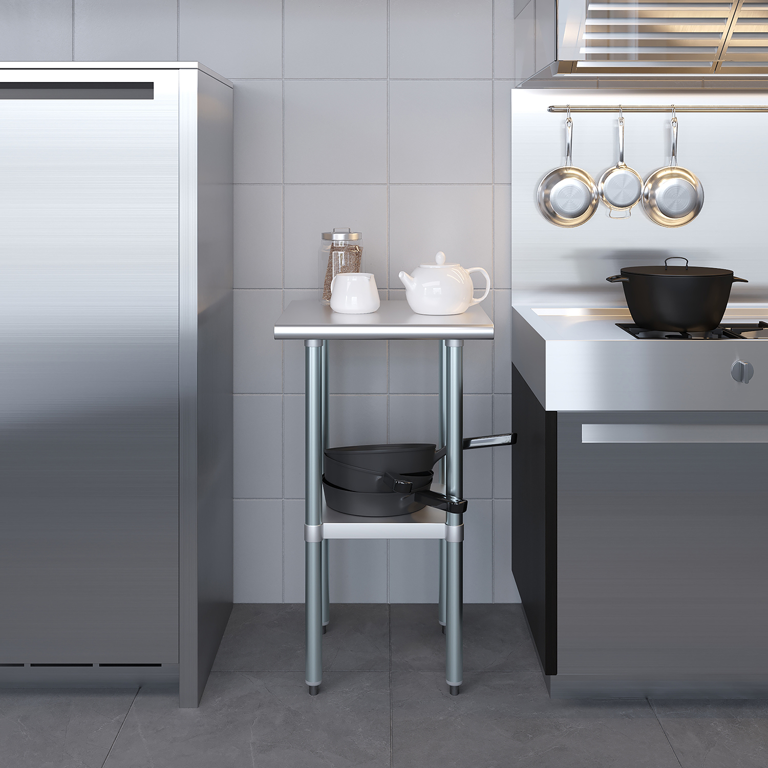 Ideal for a wide range of applications, from commercial kitchens and catering services to laboratories and workshops, the 20″ X 20″ Stainless Steel Work Table with Undershelf is a practical and stylish addition that enhances productivity and organization. Its sleek, professional appearance complements any setting, while its durable construction guarantees long-lasting performance.
