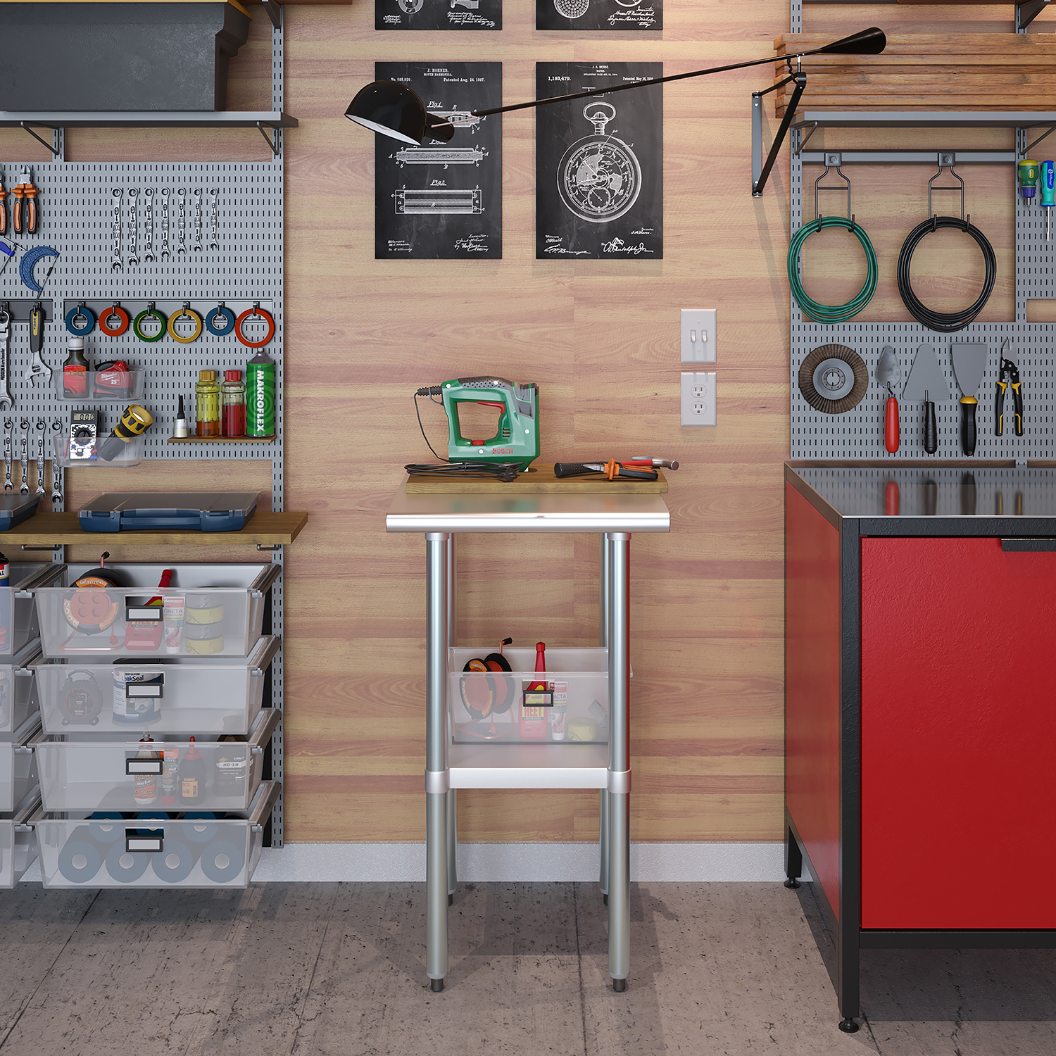 A key feature of this work table is the adjustable undershelf, which offers additional storage space for tools, supplies, and equipment. This undershelf can be positioned at your preferred height, allowing for customized storage solutions that meet your specific needs. Whether you need to store heavy equipment or small utensils, this versatile shelf enhances the functionality of your workspace by keeping essential items within easy reach.