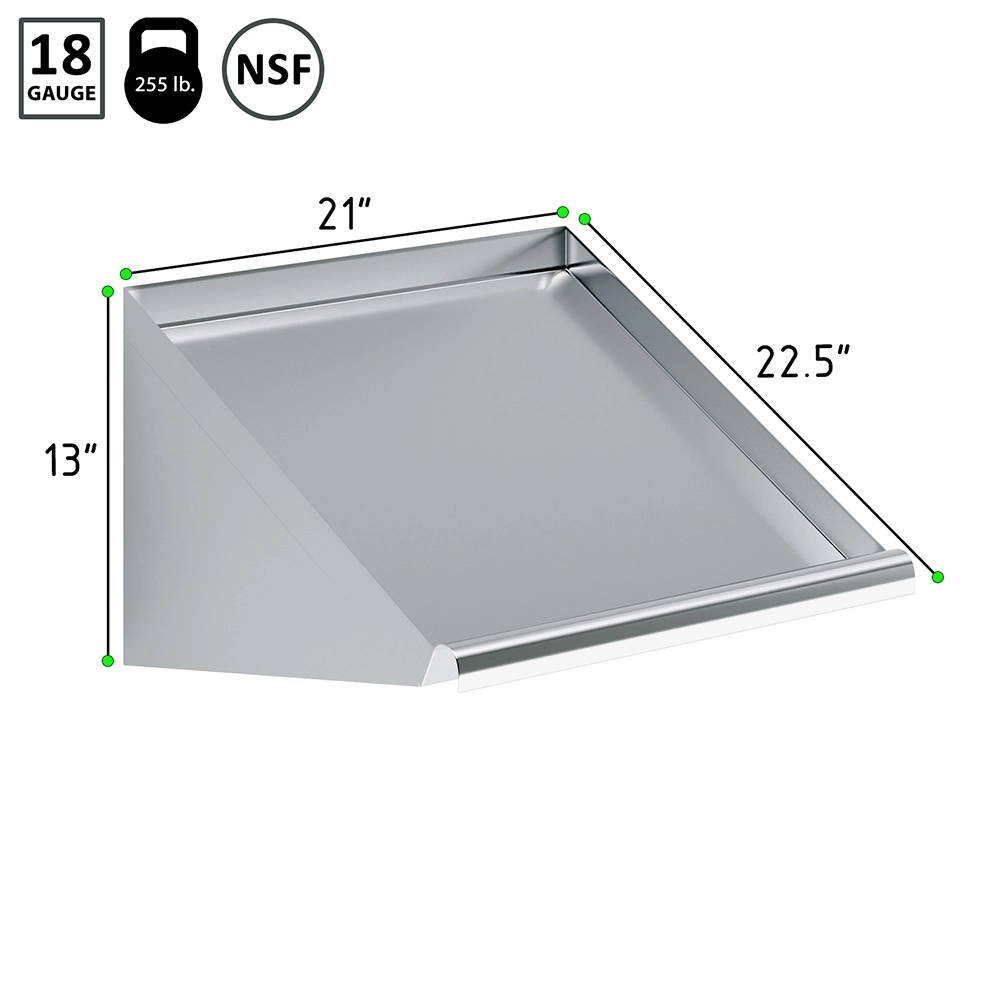 The 21 in. Stainless Steel Wall-Mounted Slanted Rack Shelf is a versatile and durable storage solution designed to optimize organization and accessibility in your workspace. Made from 18GA/304 stainless steel, this rack shelf is resistant to corrosion and stains, ensuring long-lasting performance even in demanding environments such as commercial kitchens, restaurants, and utility areas.