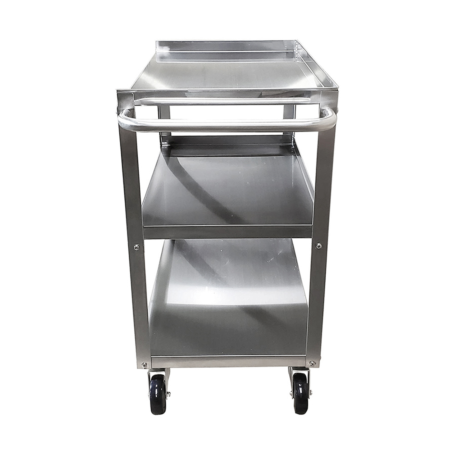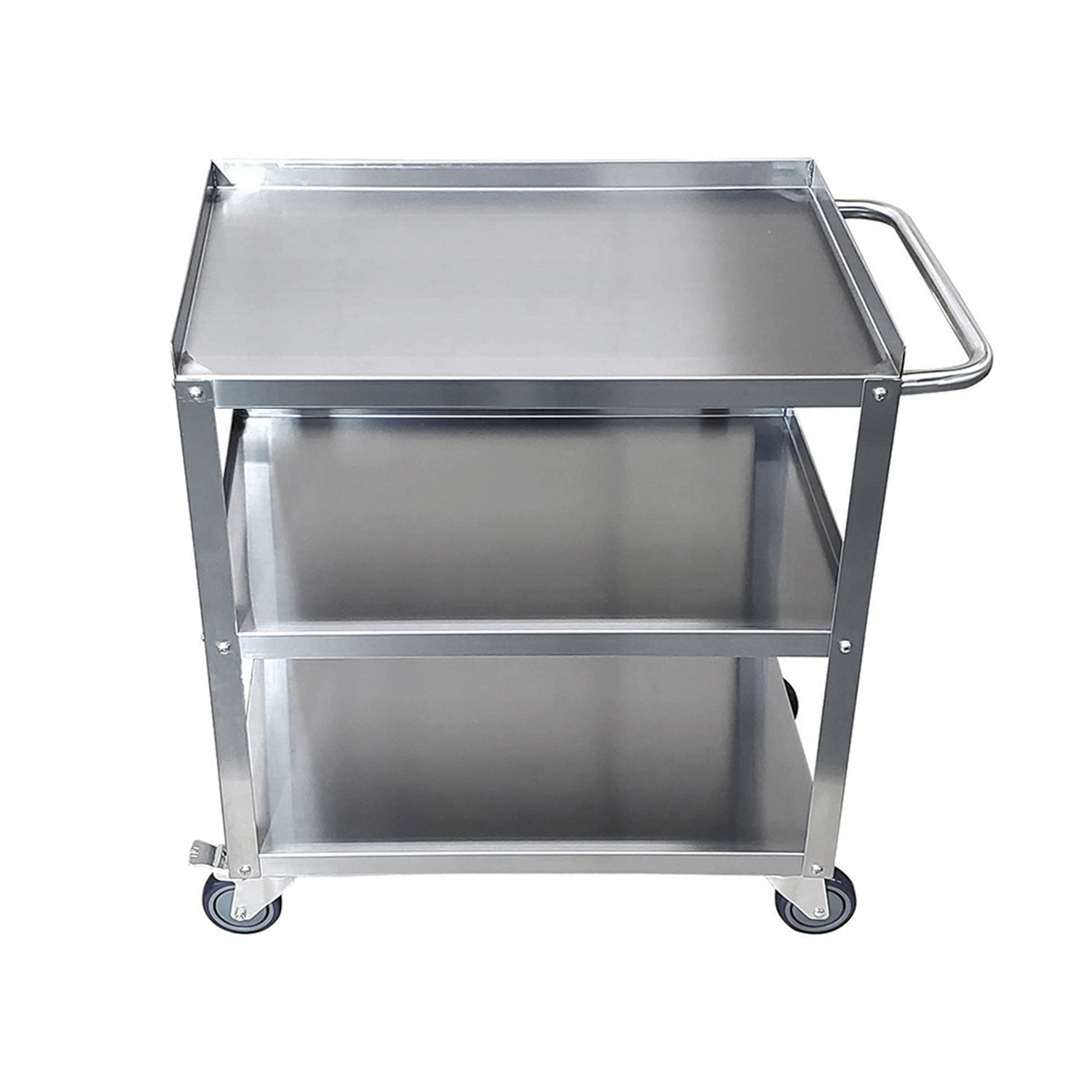 Equipped with smooth-rolling wheels, this utility cart offers excellent mobility, allowing you to effortlessly move your supplies and equipment from one area to another. The wheels are designed to glide smoothly over various surfaces, and the cart includes locking casters to ensure stability and safety when stationary. This feature makes it an ideal choice for dynamic kitchen environments where quick and efficient transport is essential.