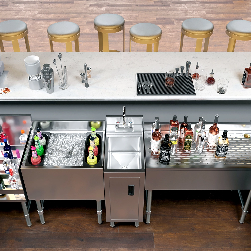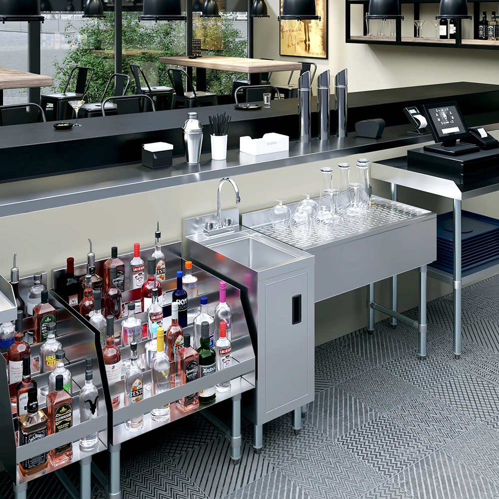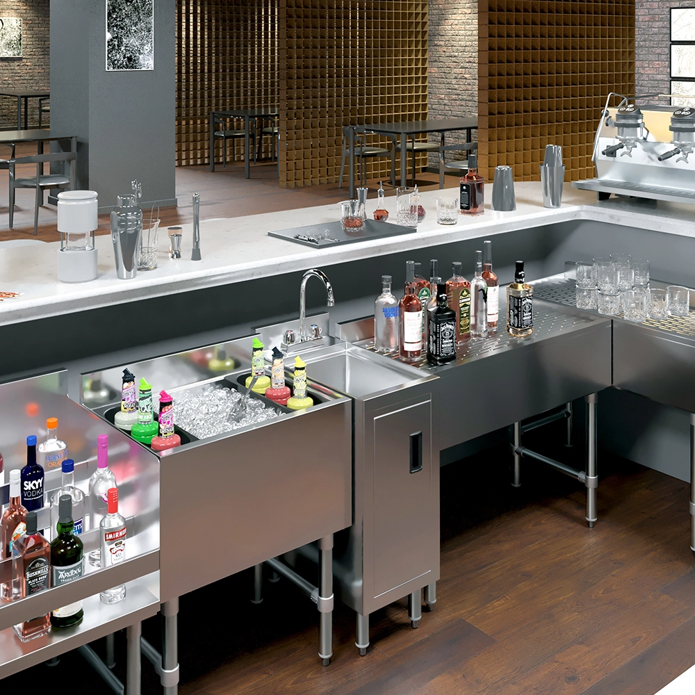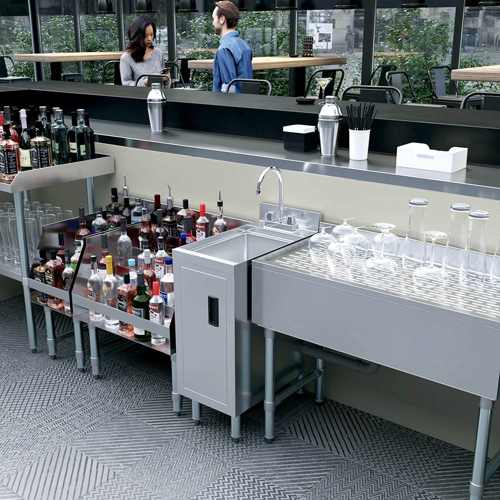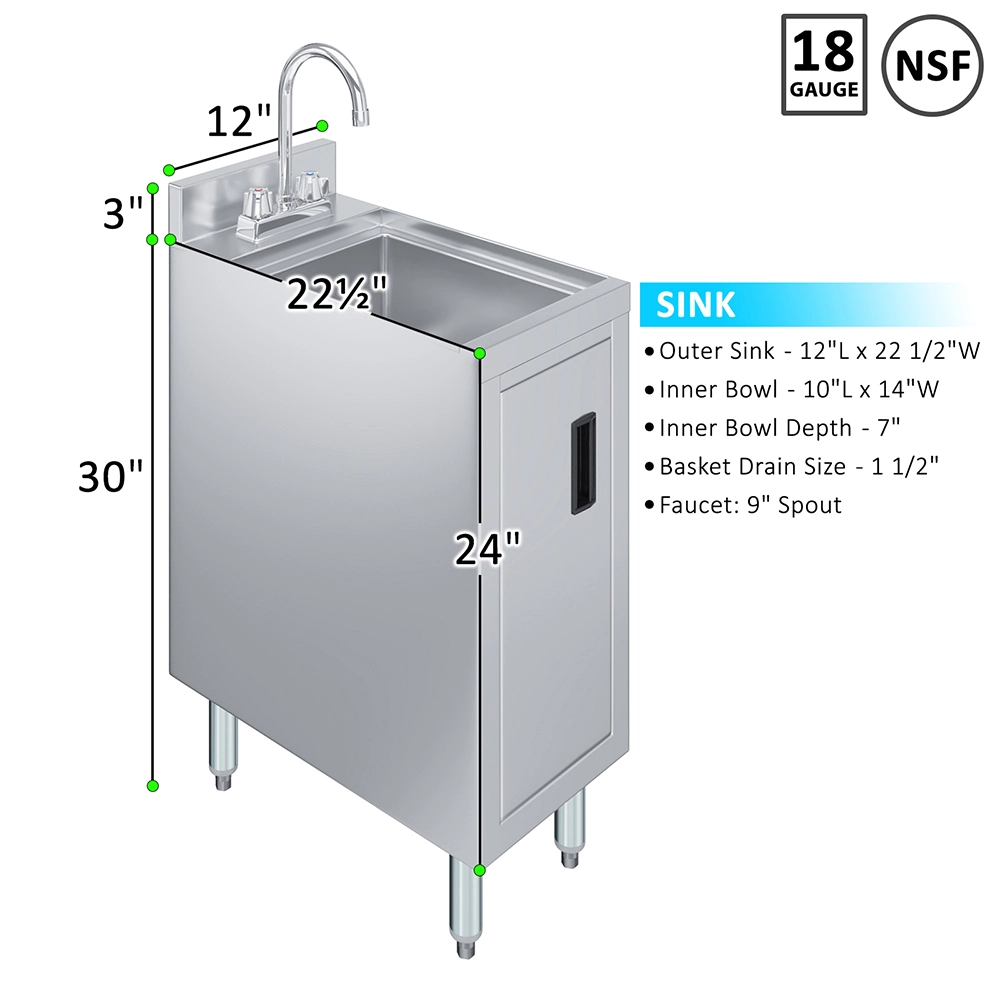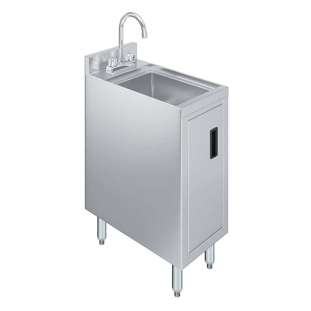 The 22 1/2 in. x 12 in. Underbar Hand Sink Cabinet is a space-saving and hygienic solution designed for commercial bars, restaurants, and foodservice environments. Constructed from 20GA/304 stainless steel, this unit offers exceptional durability and ease of cleaning—making it ideal for high-traffic, wet areas where sanitation is critical.