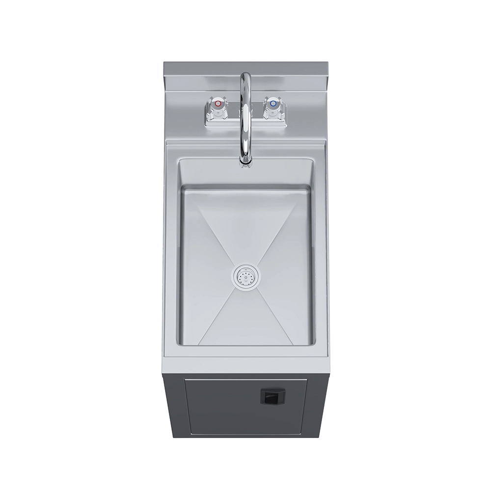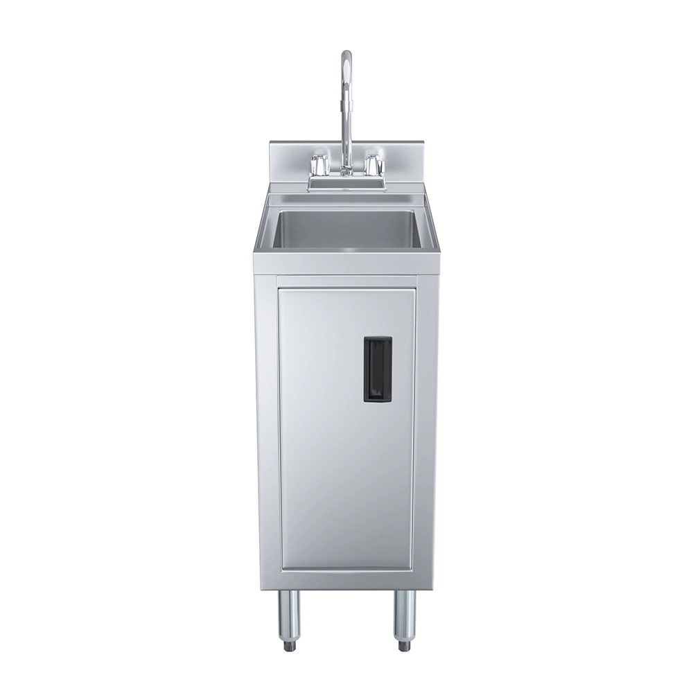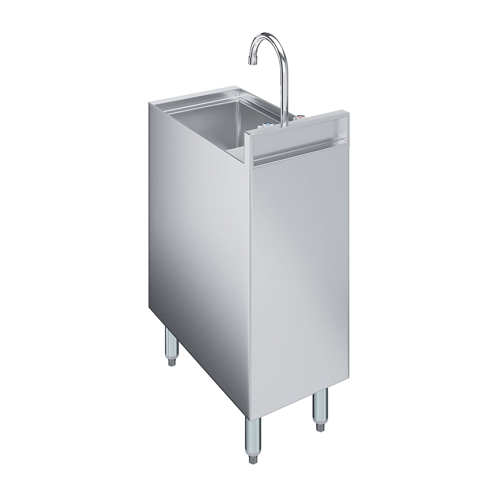 The cabinet design not only protects plumbing components but also offers structural support and long-term durability in demanding service conditions. Perfect for tight underbar installations, it ensures staff have convenient access to handwashing facilities without taking up valuable workspace.