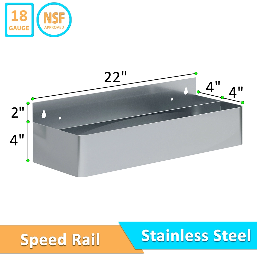 The 22 in. Abreast Double Tier Stainless Steel Speed Rail Rack is a sleek and durable storage solution designed for fast-paced bar environments. Constructed from 18GA/430 stainless steel, it offers excellent resistance stains and daily wear, ensuring long-lasting performance in bars, restaurants, and hospitality settings. Its polished finish provides a professional look while being easy to clean and maintain.