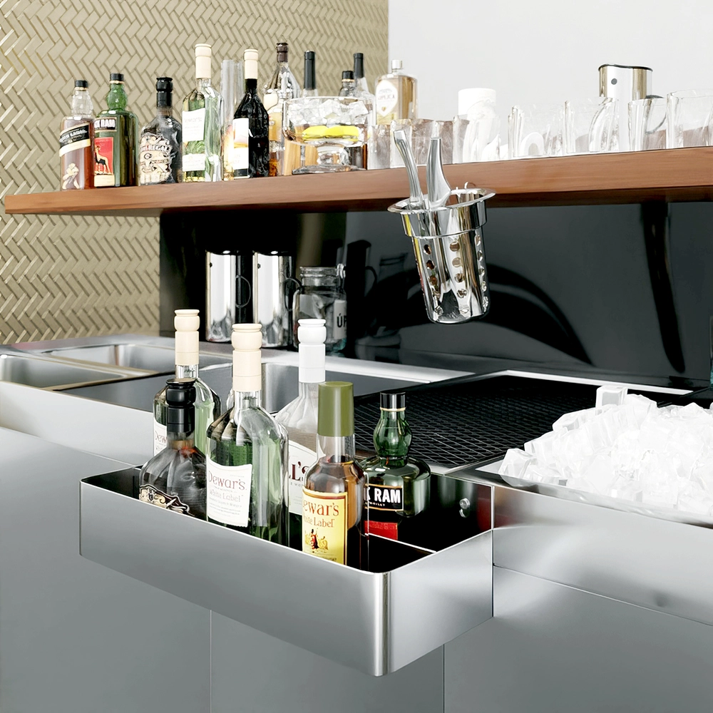 Designed for easy installation, this speed rail can be securely mounted to a bar or workstation, enhancing workflow and efficiency. Whether for a busy nightclub, restaurant, or home bar, this stainless steel speed rail rack ensures a smooth, organized, and professional bar service experience.
