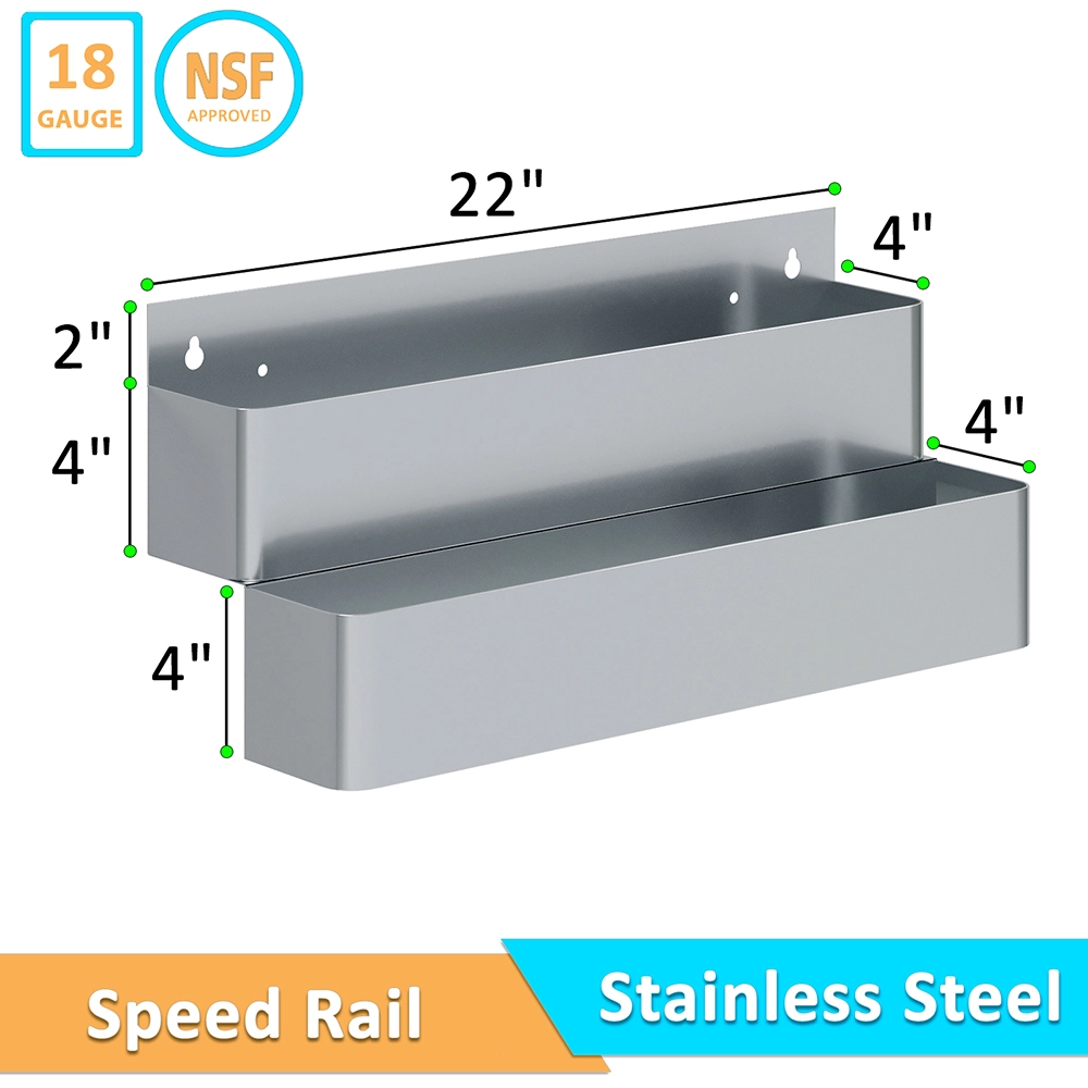 Introducing our 22″ Double Tier Stainless Steel Speed Rail Rack, a must-have for any bar or commercial kitchen aiming to maximize efficiency, organization, and speed of service. Expertly crafted from 18GA/430 stainless steel, this speed rail rack boasts exceptional durability and resistance, making it an ideal addition to high-traffic environments.