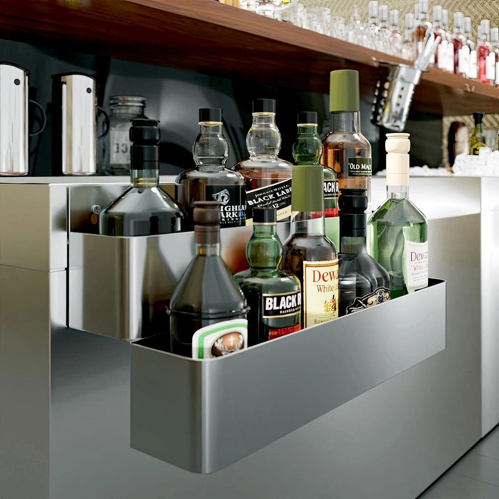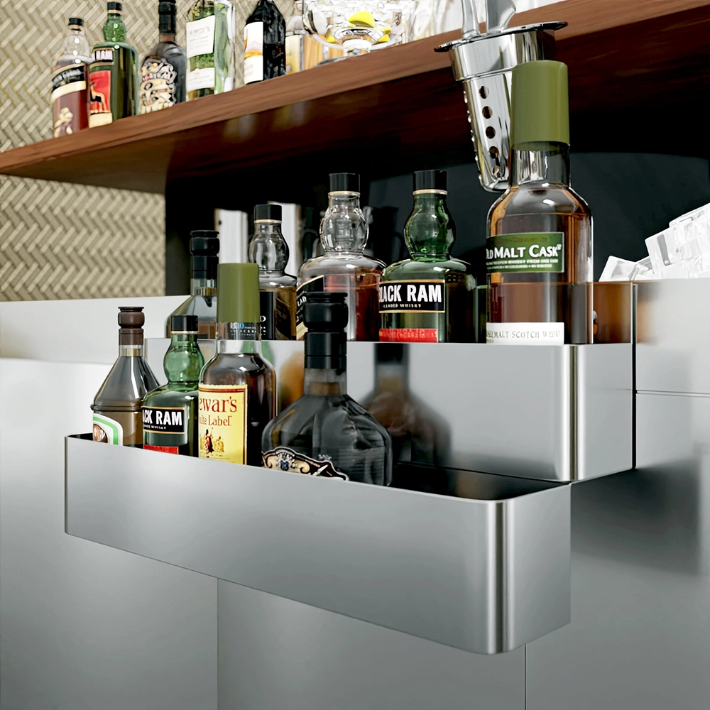 The innovative double-tier design provides ample storage space, allowing you to keep a wide array of bottles readily accessible. The 22-inch length accommodates multiple bottles on each tier, ensuring that your most frequently used spirits, mixers, oils, or sauces are within easy reach. This design not only optimizes your workspace but also helps maintain a neat and organized setup, crucial for fast-paced service areas.