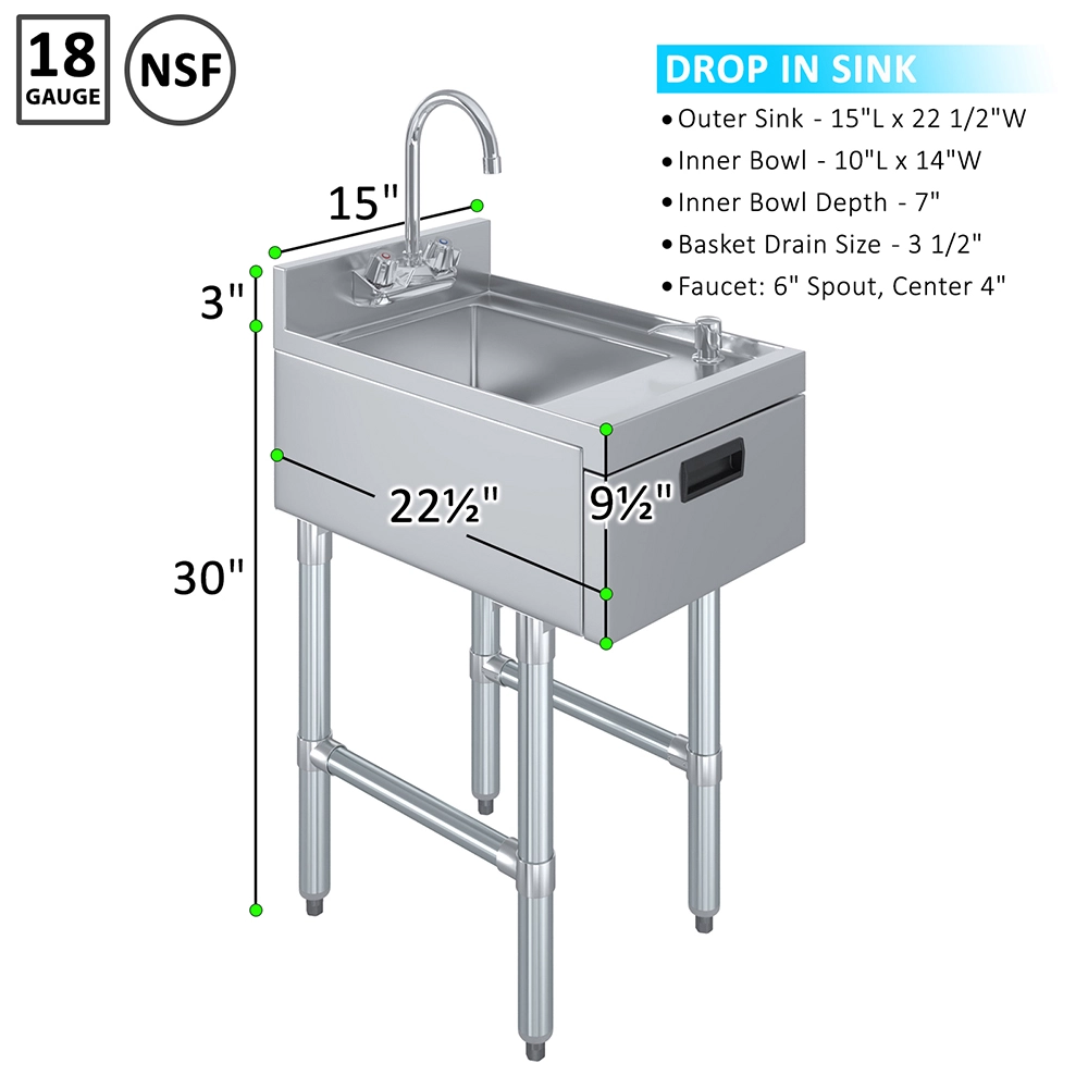 The 22 in. x 15 in. Underbar Hand Sink with Soap and Towel Dispenser is a compact, efficient hygiene station designed to meet the demands of commercial bars, restaurants, and food prep areas. Constructed from 20GA/304 stainless steel, this unit is highly durable and easy to clean—making it ideal for environments where sanitation is a top priority.