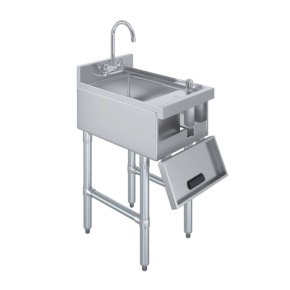 Designed for underbar installation, this unit fits neatly into tight spaces without compromising functionality. Its all-in-one design helps streamline workflow, reduce clutter, and enhance cleanliness in any service area. Whether you’re outfitting a busy bar, café, or commercial kitchen, this underbar hand sink offers a reliable and sanitary solution for daily operations.
