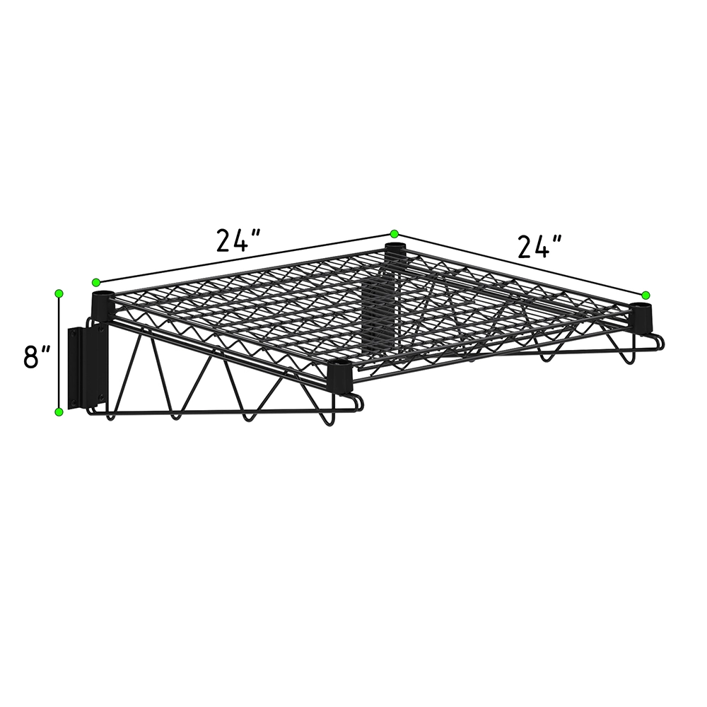 The 24 in. x 24 in. Black Epoxy Wall Mount Wire Shelf is a versatile and durable storage solution designed to optimize space in kitchens, pantries, garages, laundry rooms, and commercial settings. Made from high-quality steel, it features a black epoxy-coated finish that resists rust, corrosion, and wear, ensuring long-term durability. The open-wire design promotes air circulation, preventing dust buildup and keeping stored items fresh and clean.