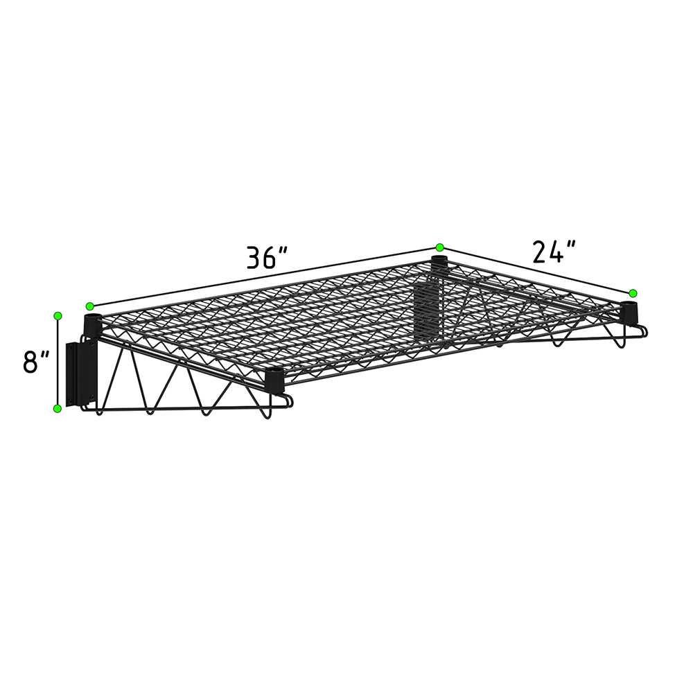 The 24 in. x 36 in. Black Epoxy Wall Mount Wire Shelf is a versatile and durable storage solution designed to optimize space in kitchens, pantries, garages, laundry rooms, and commercial settings. Made from high-quality steel, it features a black epoxy-coated finish that resists rust, corrosion, and wear, ensuring long-term durability. The open-wire design promotes air circulation, preventing dust buildup and keeping stored items fresh and clean.