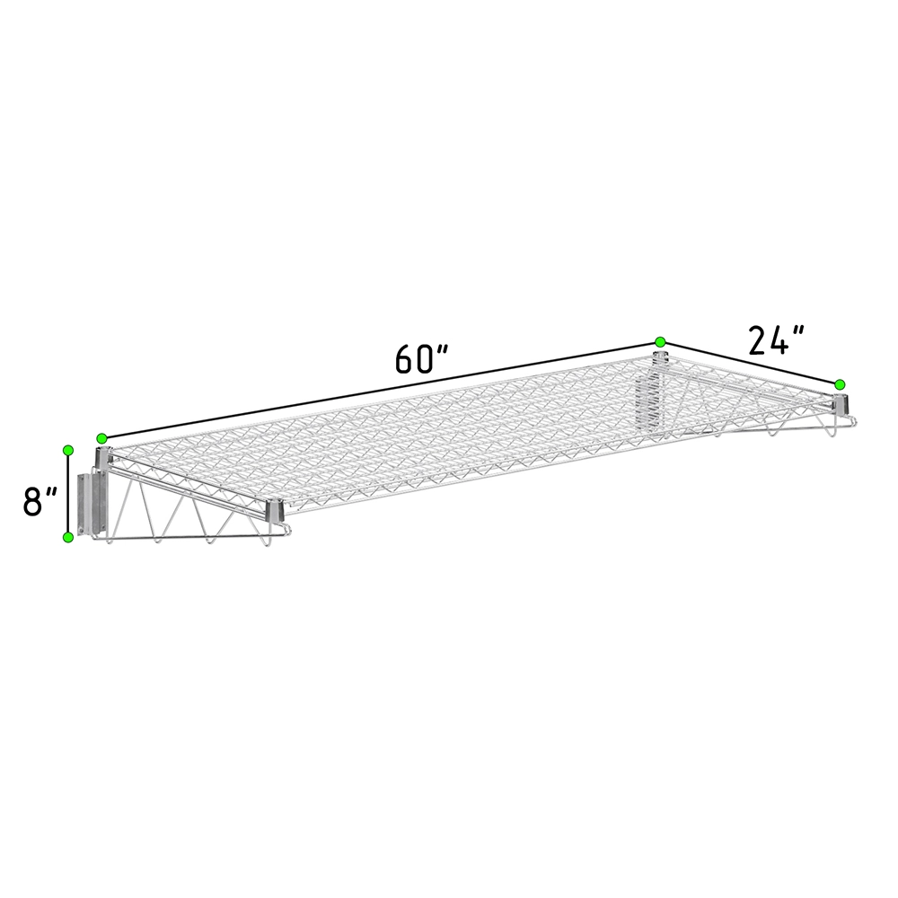 The 24 in. x 60 in. Chrome Wall Mount Wire Shelf With Brackets is a stylish and practical storage solution, ideal for both residential and commercial spaces. Constructed from heavy-duty steel and finished with a high-quality chrome plating, this wire shelf offers superior strength, durability, and resistance to rust and corrosion. Its sleek, reflective surface adds a modern touch to kitchens, pantries, garages, laundry rooms, or retail environments.