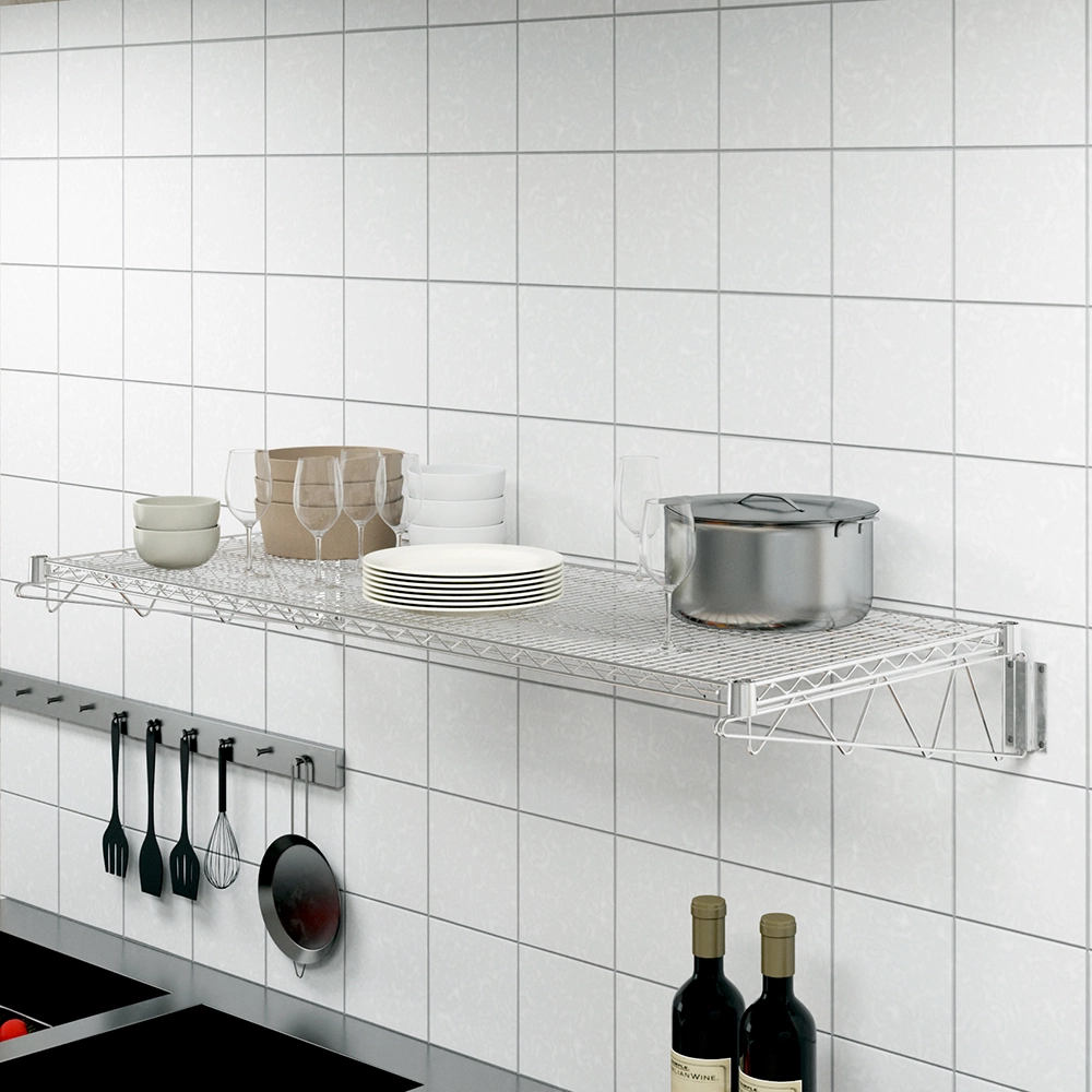 Installation is quick and easy with all necessary hardware included. Whether you’re maximizing storage in tight spaces or creating a cleaner, more organized environment, this chrome wire shelf offers a reliable and attractive solution.