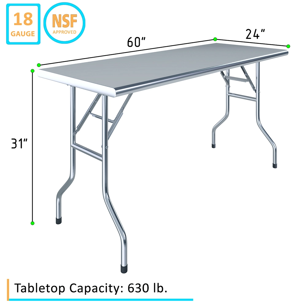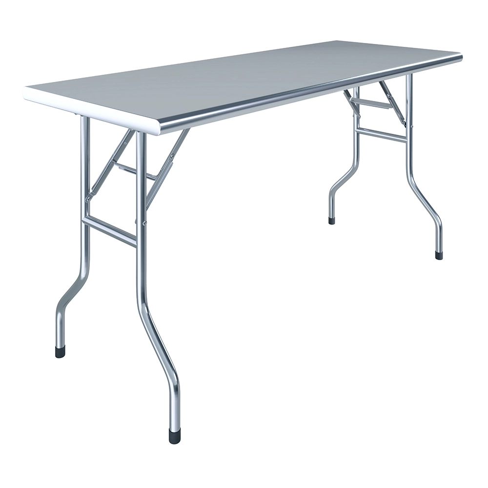 Designed for efficiency and reliability, this stainless steel folding table is easy to set up and take down, making it a practical addition to any fast-paced kitchen or work environment requiring flexibility and durability.