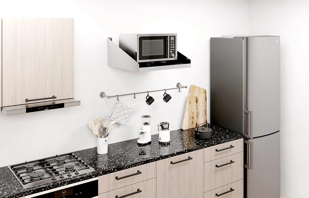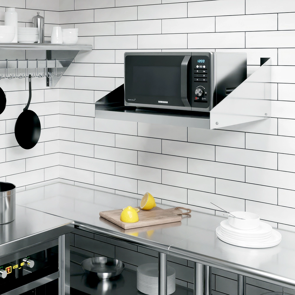 The sleek, modern design of the stainless steel wall shelf seamlessly blends with any décor, adding a touch of sophistication to your space. Its polished surface not only enhances its visual appeal but also makes cleaning and maintenance a breeze, promoting a hygienic environment in areas such as kitchens and food preparation zones.