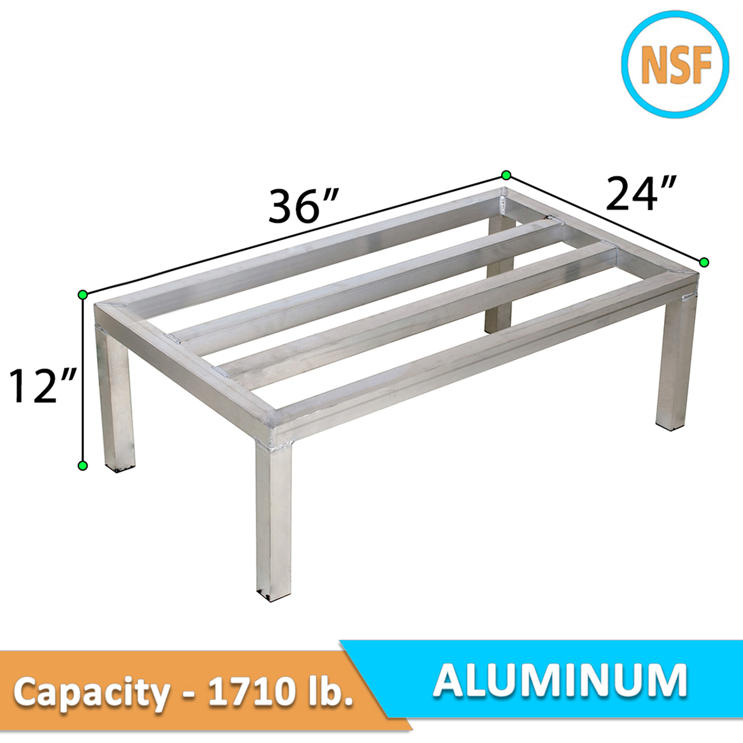 Introducing the 24″ Wide x 36″ Length x 12″ Height Aluminum Dunnage Rack, a premium storage solution designed to enhance the efficiency and organization of your commercial kitchen, warehouse, or storage room. Constructed from aluminum, this dunnage rack is built to last, offering exceptional, making it ideal for environments where durability and hygiene are paramount.