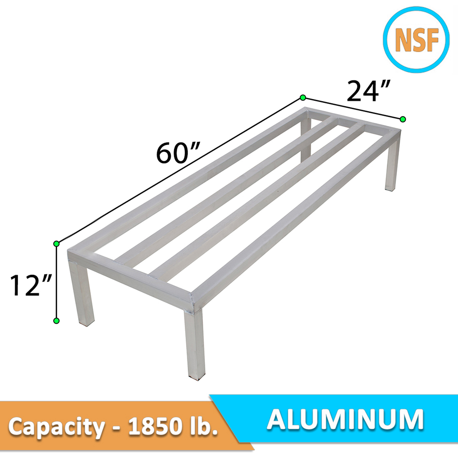 Introducing the 24″ Wide x 60″ Length x 12″ Height Aluminum Dunnage Rack, a premium storage solution designed to enhance the efficiency and organization of your commercial kitchen, warehouse, or storage room. Constructed from aluminum, this dunnage rack is built to last, offering exceptional, making it ideal for environments where durability and hygiene are paramount.