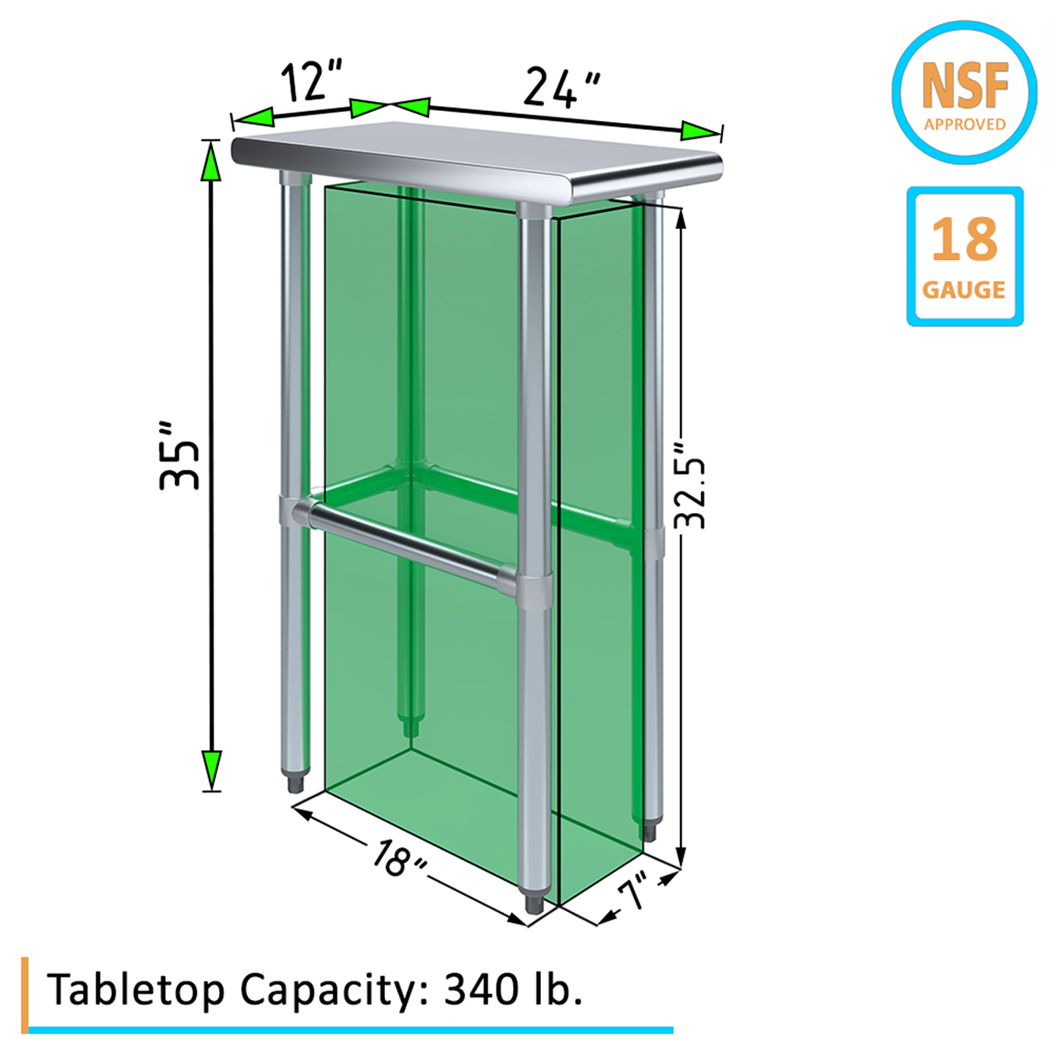 Enhance your workspace with the versatile and durable 24″ x 12″ Stainless Steel Work Table with Open Base. Crafted from 18GA/430 stainless steel, this work table is designed to withstand the rigors of daily use in commercial kitchens, workshops, laboratories, and other demanding environments. Its sleek, smooth surface is not only easy to clean but also resistant, ensuring long-lasting performance and hygiene.