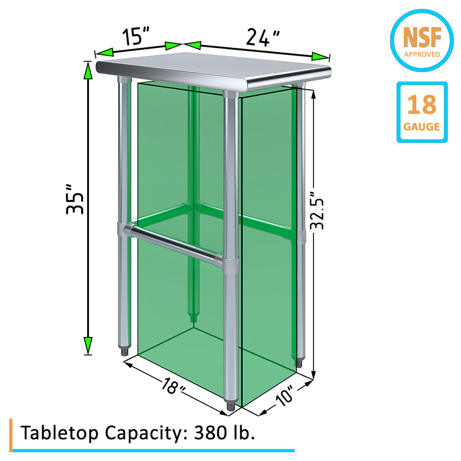 Enhance your workspace with the versatile and durable 24″ x 15″ Stainless Steel Work Table with Open Base. Crafted from 18GA/430 stainless steel, this work table is designed to withstand the rigors of daily use in commercial kitchens, workshops, laboratories, and other demanding environments. Its sleek, smooth surface is not only easy to clean but also resistant, ensuring long-lasting performance and hygiene.