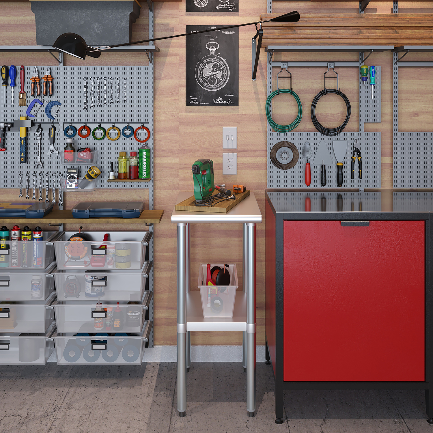 Designed for stability and convenience, this work table features sturdy legs that provide robust support, ensuring the table remains steady during use. The legs are equipped with adjustable bullet feet, allowing for level placement on uneven floors and ensuring a secure and stable work surface. Easy assembly means you can quickly integrate this table into your existing setup without hassle.
