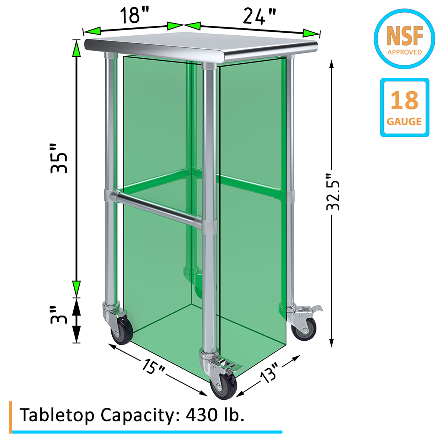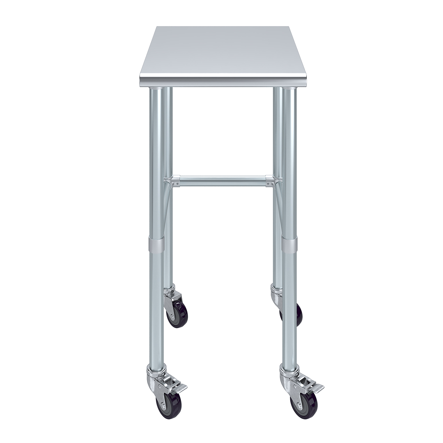 Upgrade your workspace with this versatile and practical work table that combines high functionality with contemporary design. Perfect for enhancing productivity and organization, the 24″ x 18″ Stainless Steel Work Table with Open Base and Wheels is an indispensable asset for any professional setting, providing durability, convenience, and efficiency in a compact, mobile unit.