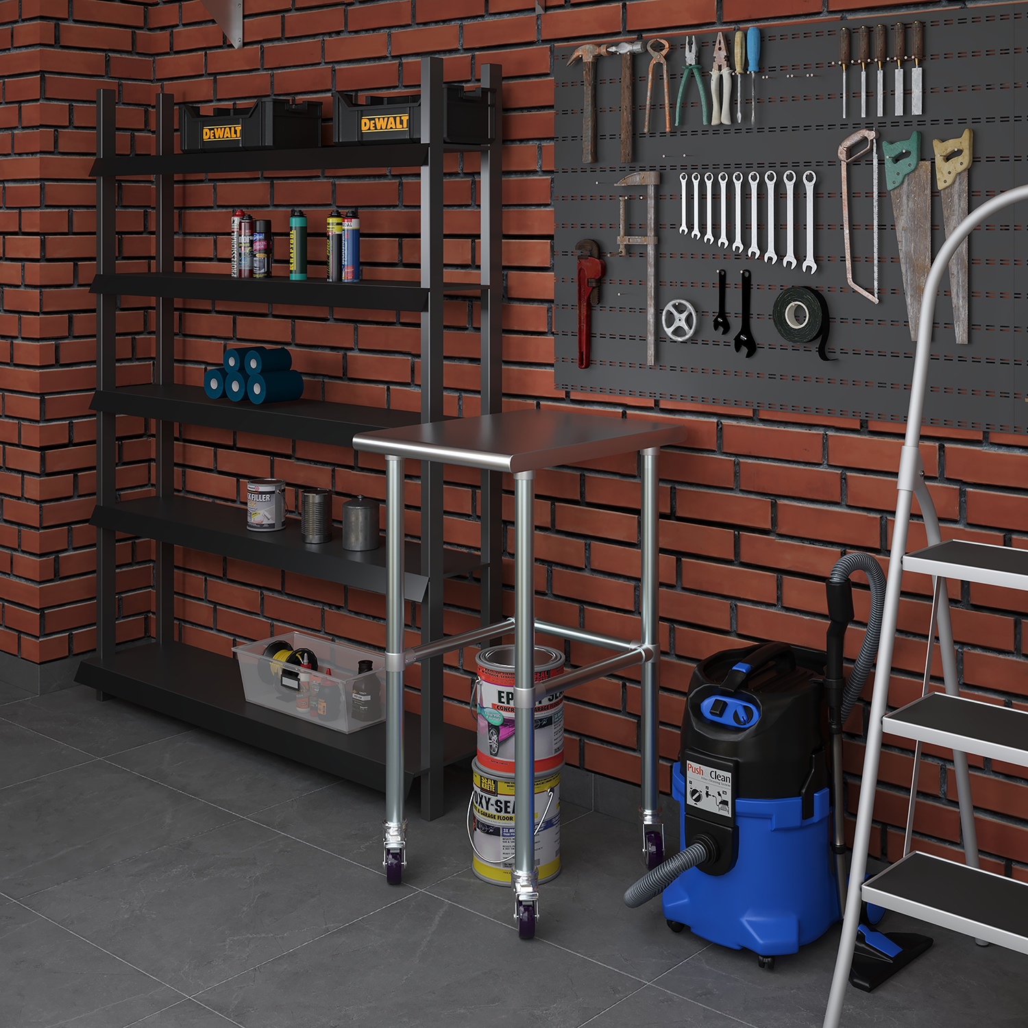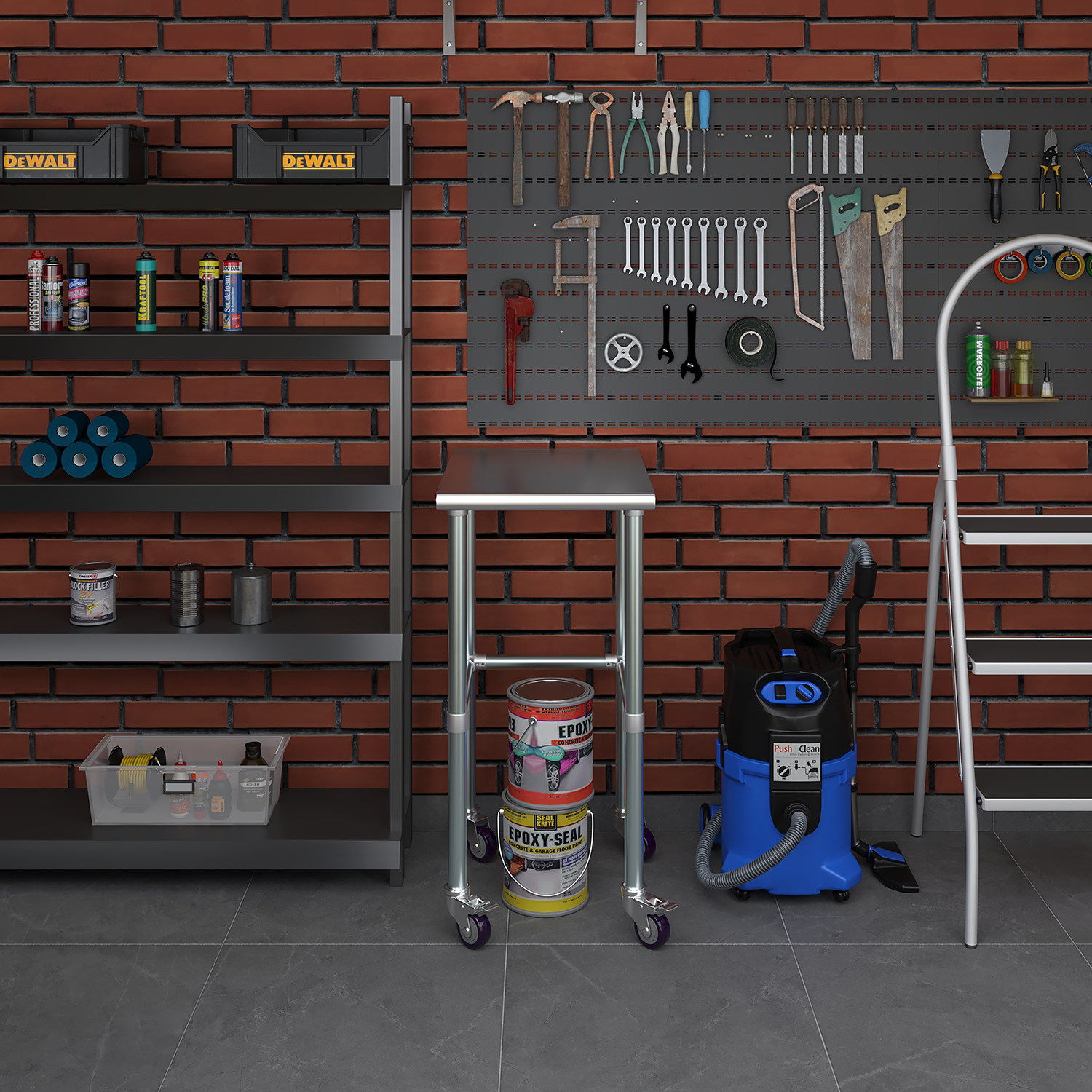 The compact dimensions of 24 inches by 18 inches make this work table an excellent choice for smaller spaces while still providing a robust and functional workspace. Despite its compact footprint, the table offers ample space for a variety of tasks, from food preparation and assembly work to scientific experiments and crafting projects.