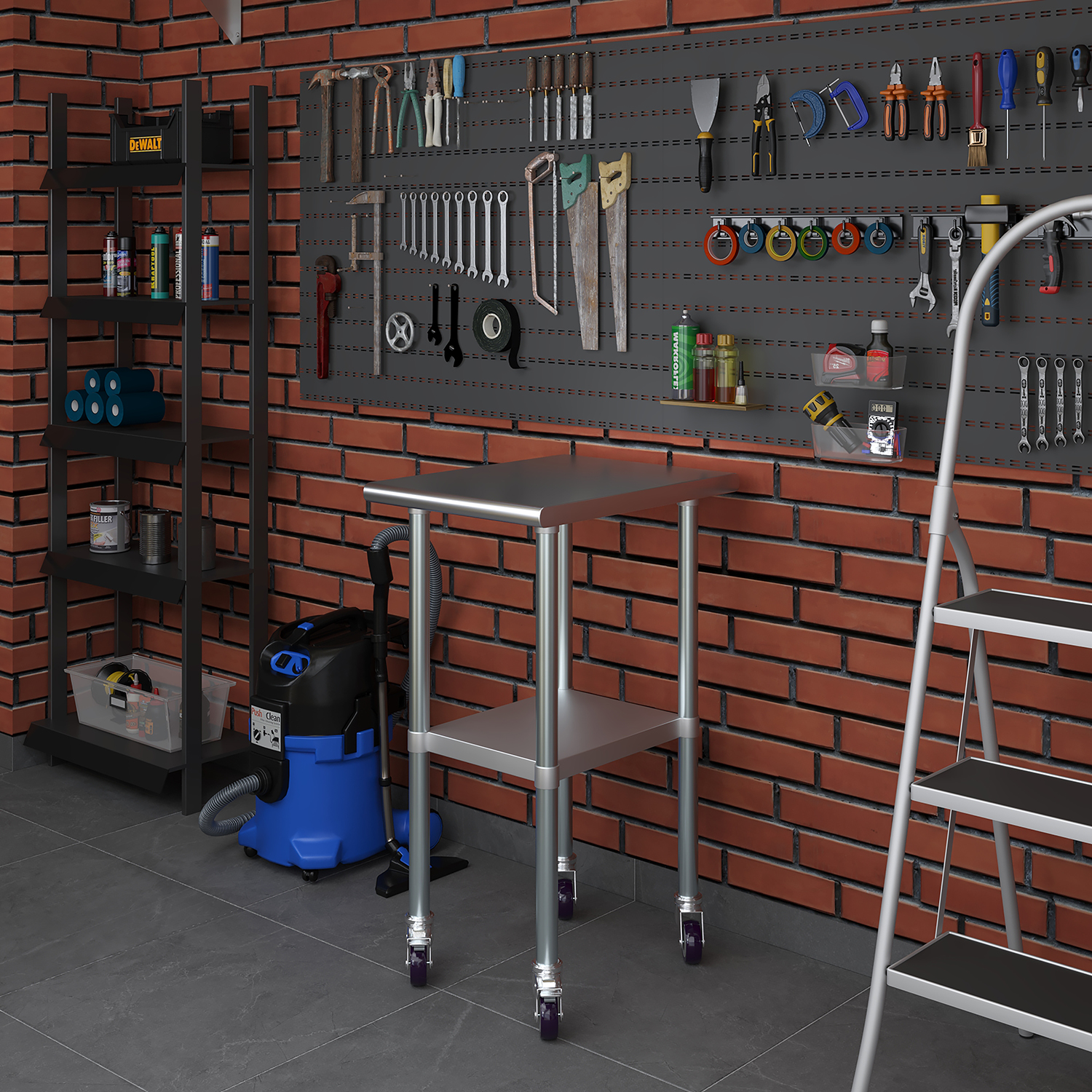 The compact dimensions of 24 inches by 18 inches make this work table an excellent choice for smaller spaces while still providing a robust and functional workspace. Despite its compact footprint, the table offers ample space for a variety of tasks, from food preparation and assembly work to scientific experiments and crafting projects.
