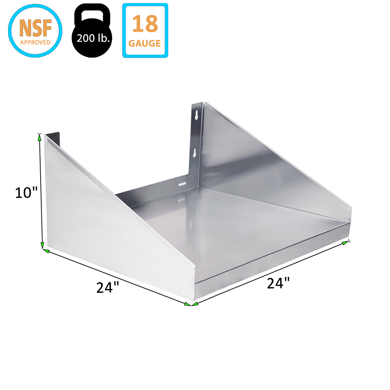 Introducing our 24″ x 24″ Stainless Steel Microwave Shelf, a superior storage solution designed to optimize your kitchen space and organization. This qualty shelf is expertly from 18GA/430 stainless steel, ensuring exceptional durability, strength, and resistance. Ideal for both residential and commercial kitchens, it provides a reliable and stylish platform to securely hold your microwave and other kitchen essentials.