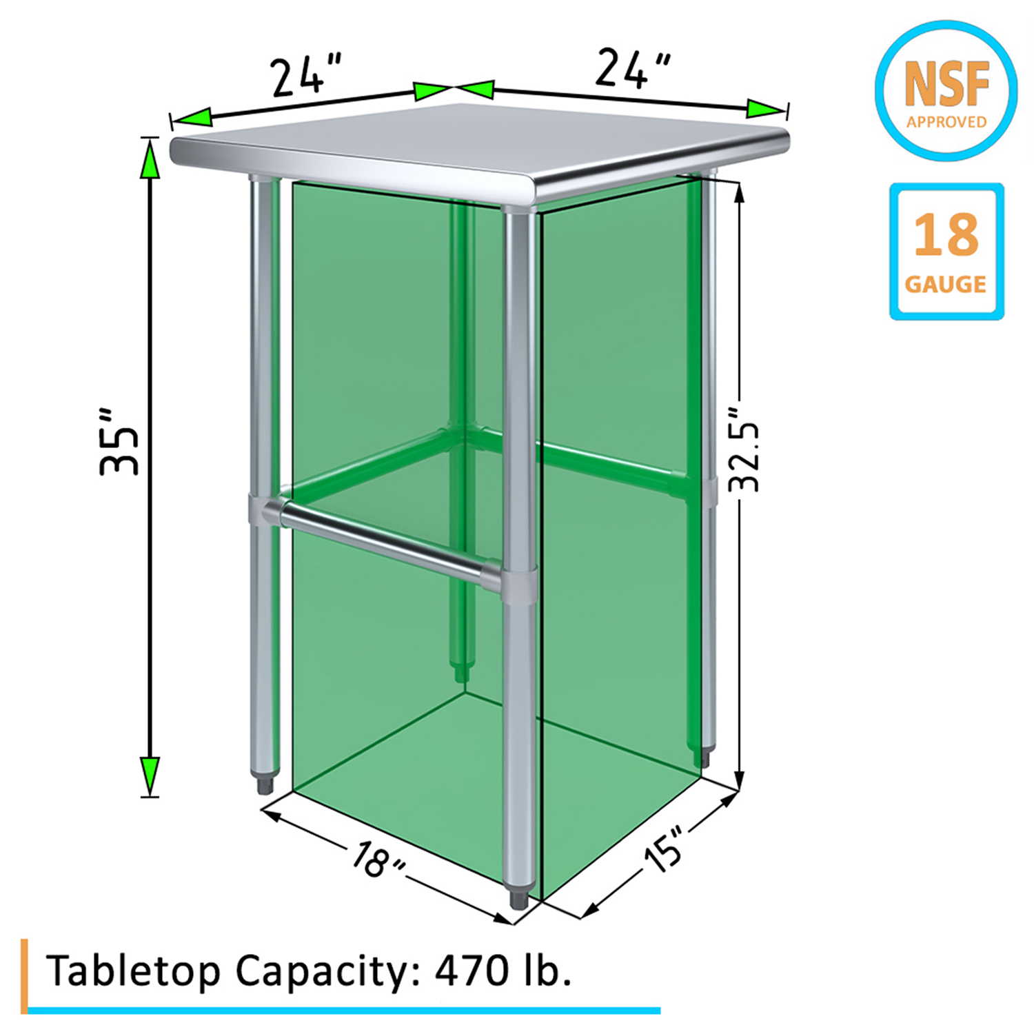 Elevate your workspace with this 24″ x 24 Stainless Steel Work Table. Designed for durability and efficiency, its 18GA/430 stainless steel surface offers easy cleaning and resistance, making it ideal for various environments. The open base provides ample storage for tools and supplies, enhancing accessibility and organization. Perfect for kitchens, workshops, and labs, this sturdy work table ensures reliable performance and convenience in your daily tasks. Upgrade your setup with a blend of functionality and modern design.