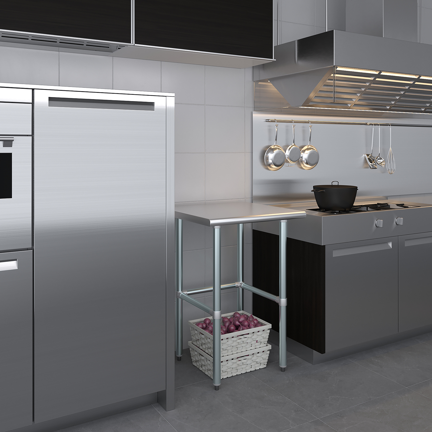 Measuring 24 inches by 24 inches, this work table offers a compact footprint that fits seamlessly into smaller spaces while still providing ample workspace for your projects. The clean, modern design complements any setting, adding a touch of professionalism to your environment. Whether you’re slicing ingredients in a busy kitchen, assembling components in a workshop, or conducting experiments in a lab, this stainless steel work table is a reliable and stylish addition to your workspace.