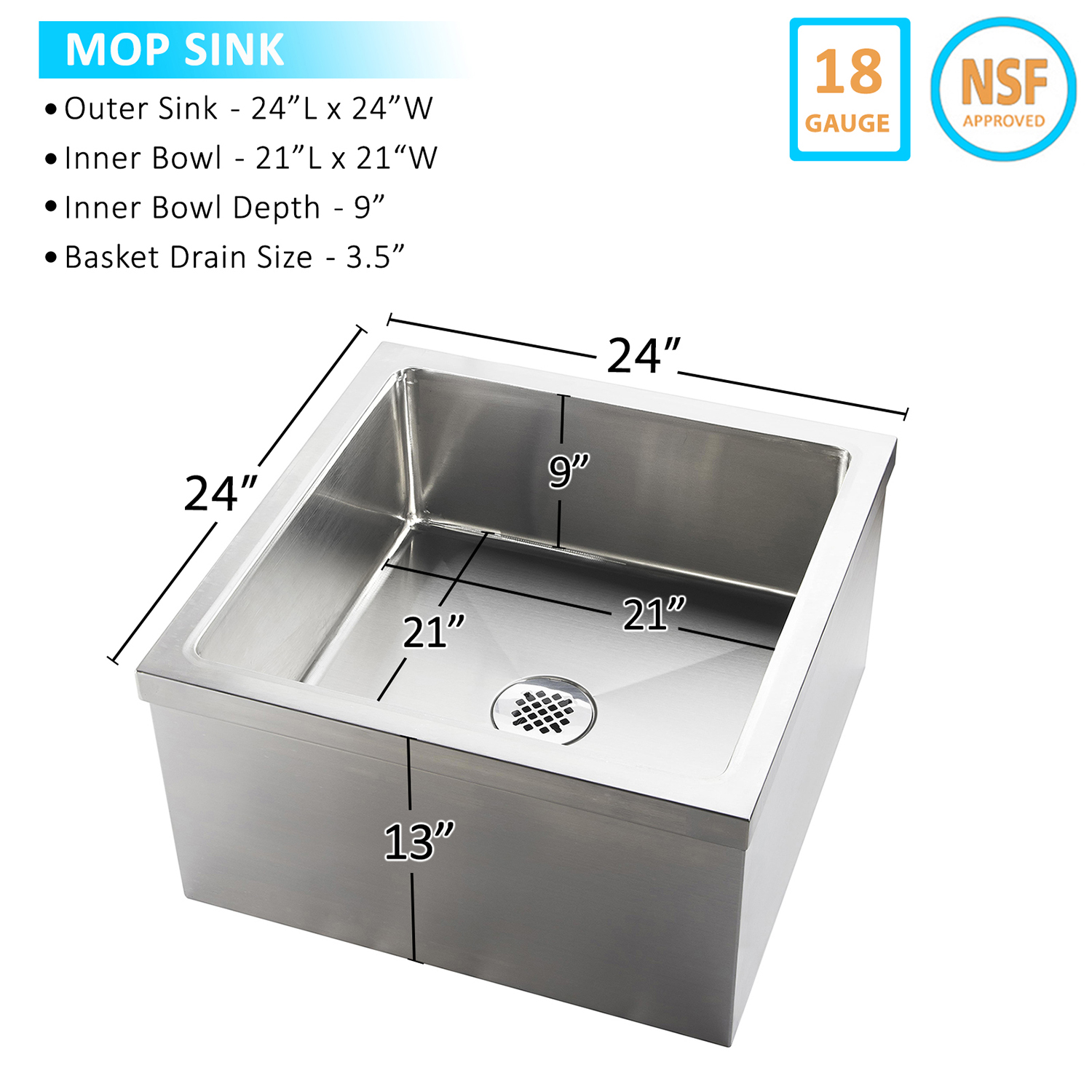 Whether you are outfitting a new facility or upgrading your current janitorial area, our 24″ x 24″ x 13″ Stainless Steel Floor Mop Sink provides a robust and practical solution that enhances both hygiene and productivity. Invest in a mop sink that combines quality, functionality, and ease of use, and experience the benefits of a well-organized and efficient cleaning environment.