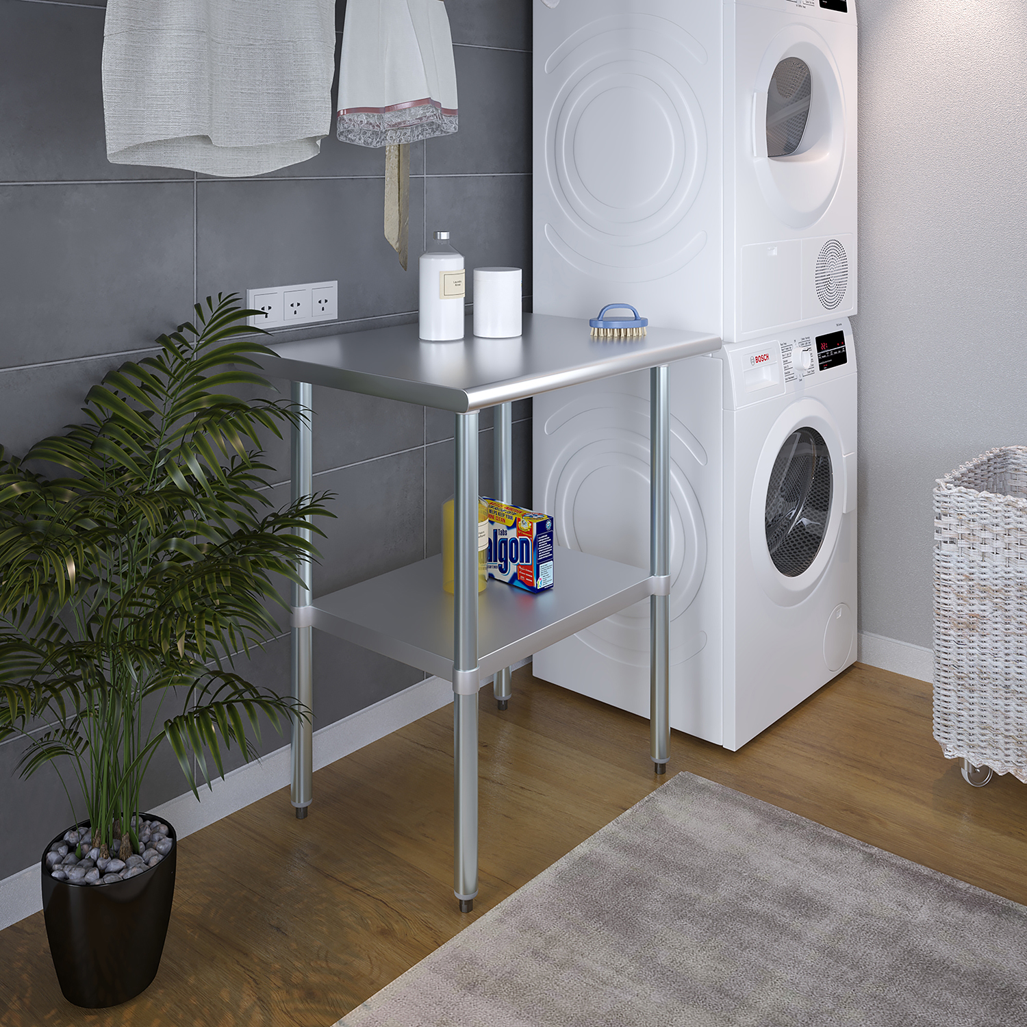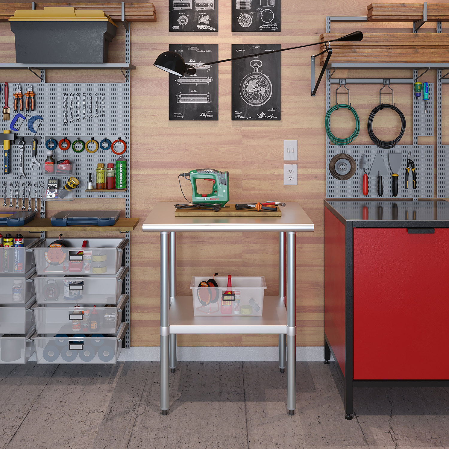 A key feature of this work table is the adjustable undershelf, which offers additional storage space for tools, supplies, and equipment. This undershelf can be positioned at your preferred height, allowing for customized storage solutions that meet your specific needs. Whether you need to store heavy equipment or small utensils, this versatile shelf enhances the functionality of your workspace by keeping essential items within easy reach.