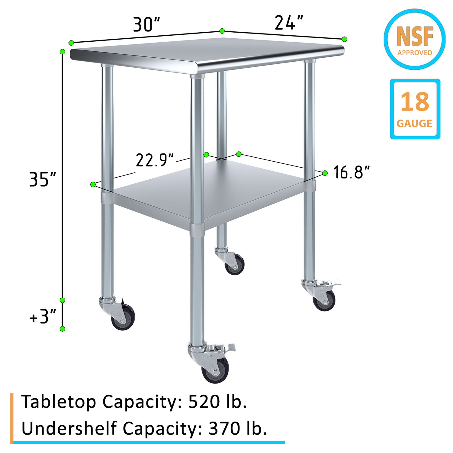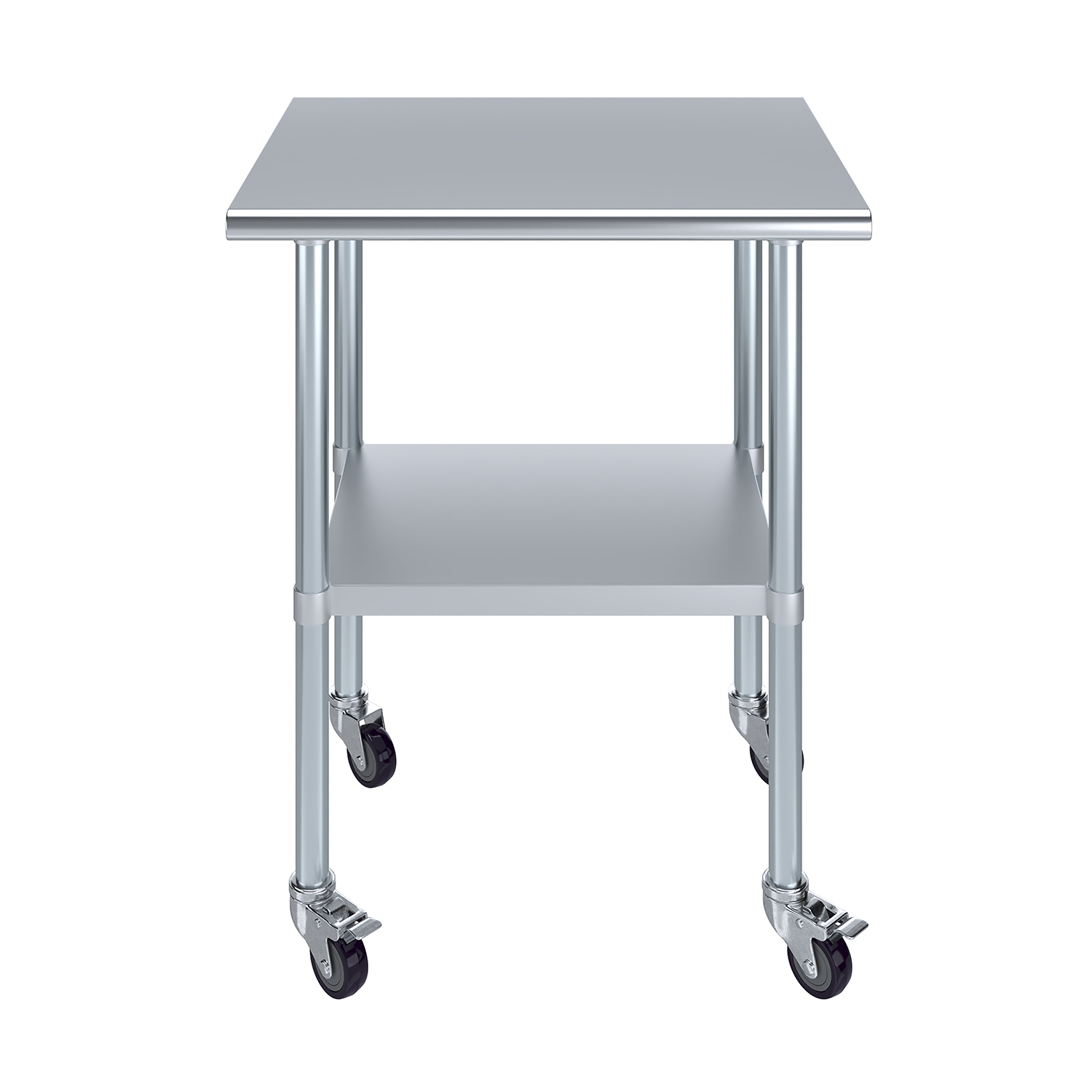 Upgrade your workspace with this versatile and practical work table that combines high functionality with contemporary design. Perfect for enhancing productivity and organization, the 24″ x 30″ Stainless Steel Work Table with Undershelf and Wheels is an indispensable asset for any professional setting, providing durability, convenience, and efficiency in a compact, mobile unit.