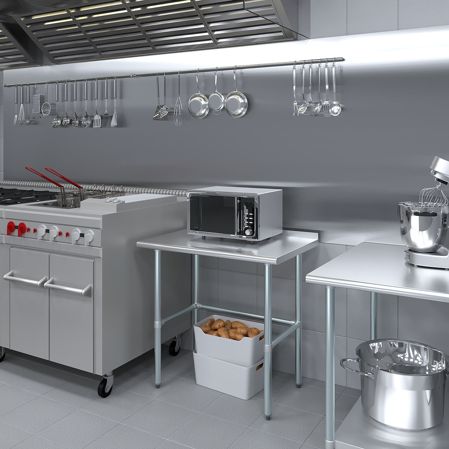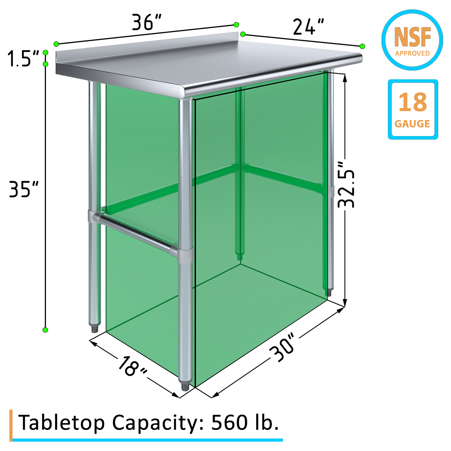 The 1.5″ backsplash is designed to contain spills and splashes, protecting your walls and maintaining a clean and sanitary work area. This feature is especially useful in food preparation settings, where hygiene is paramount. The sleek, smooth surface of the table allows for effortless cleaning, helping you maintain high standards of cleanliness with minimal effort.