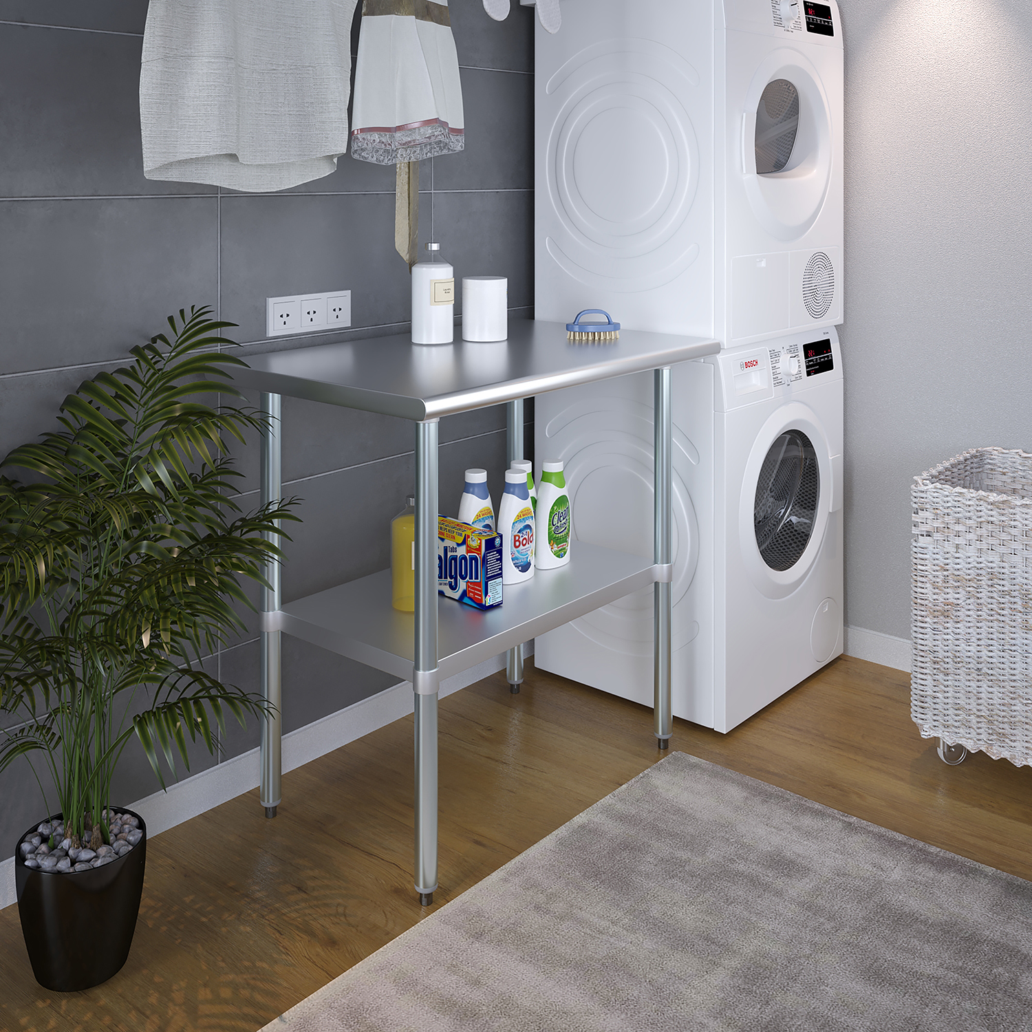 A key feature of this work table is the adjustable undershelf, which offers additional storage space for tools, supplies, and equipment. This undershelf can be positioned at your preferred height, allowing for customized storage solutions that meet your specific needs. Whether you need to store heavy equipment or small utensils, this versatile shelf enhances the functionality of your workspace by keeping essential items within easy reach.