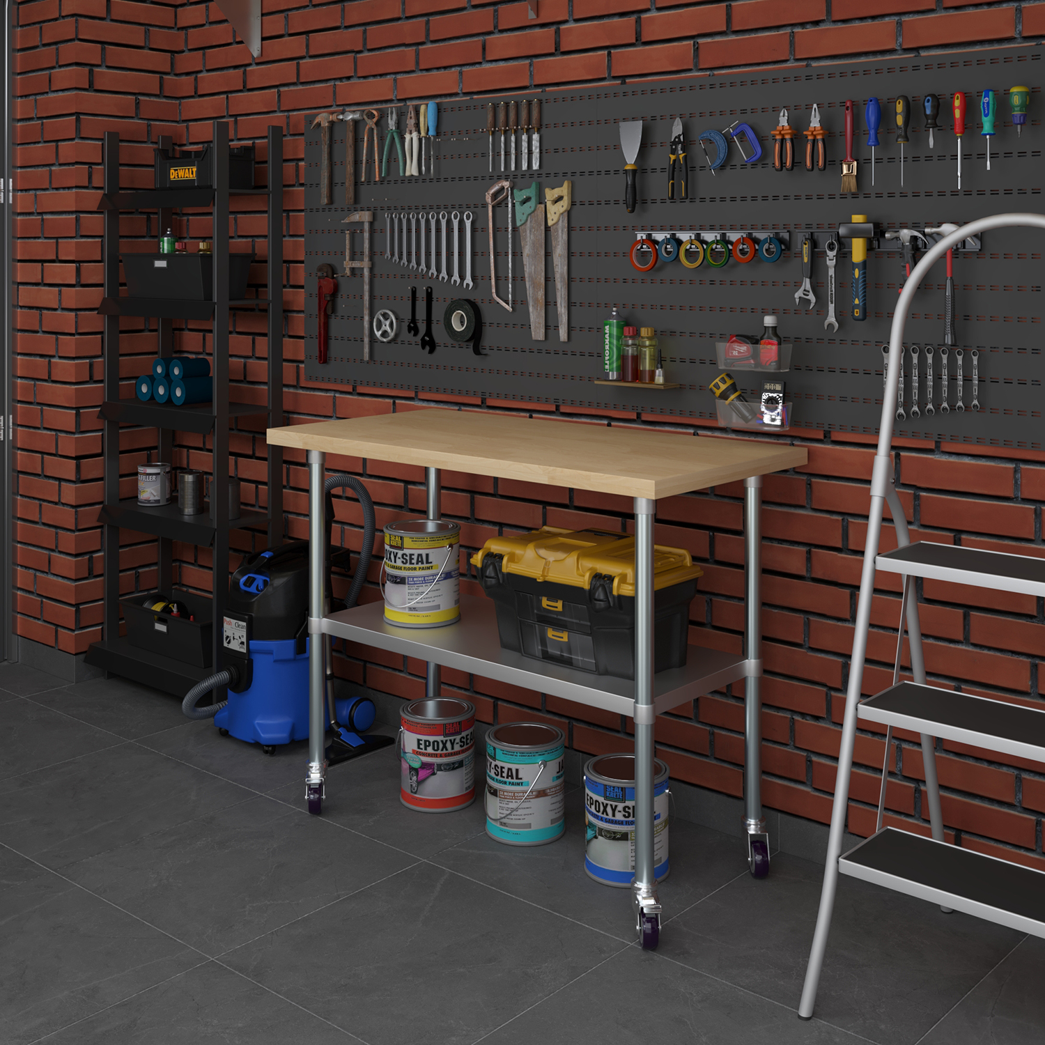 The table includes an adjustable undershelf made from galvanized stainless steel, offering customizable storage solutions to keep your workspace organized and efficient. The undershelf can be easily adjusted to accommodate items of different sizes, making it a practical addition to kitchens, workshops, and commercial environments. This flexibility allows you to store kitchen supplies, tools, equipment, and more, maximizing your storage space and maintaining a clutter-free work area.