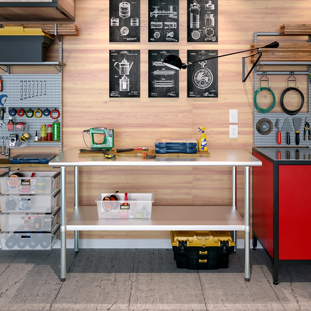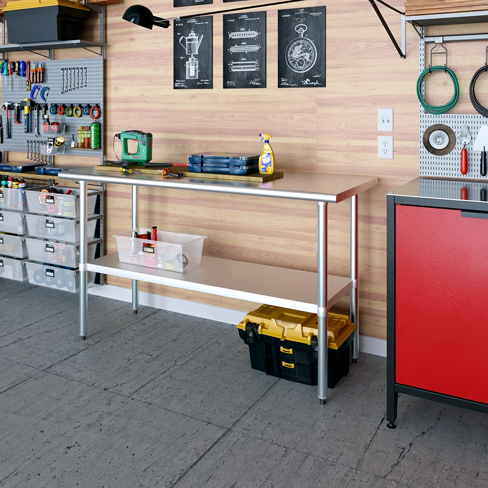 A key feature of this work table is the adjustable undershelf, which offers additional storage space for tools, supplies, and equipment. This undershelf can be positioned at your preferred height, allowing for customized storage solutions that meet your specific needs. Whether you need to store heavy equipment or small utensils, this versatile shelf enhances the functionality of your workspace by keeping essential items within easy reach.