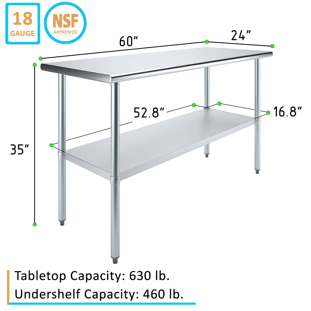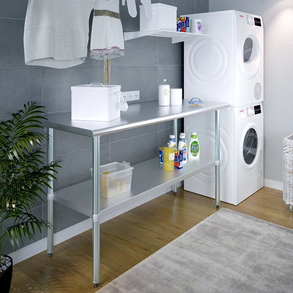 Introducing the 24″ X 60″ Stainless Steel Work Table with Undershelf – a robust and versatile solution for enhancing efficiency and organization in any commercial kitchen, workshop, or utility space. Meticulously crafted from 18GA/430 stainless steel, this work table ensures exceptional durability, resistance and easy maintenance, making it a reliable addition to any professional environment.