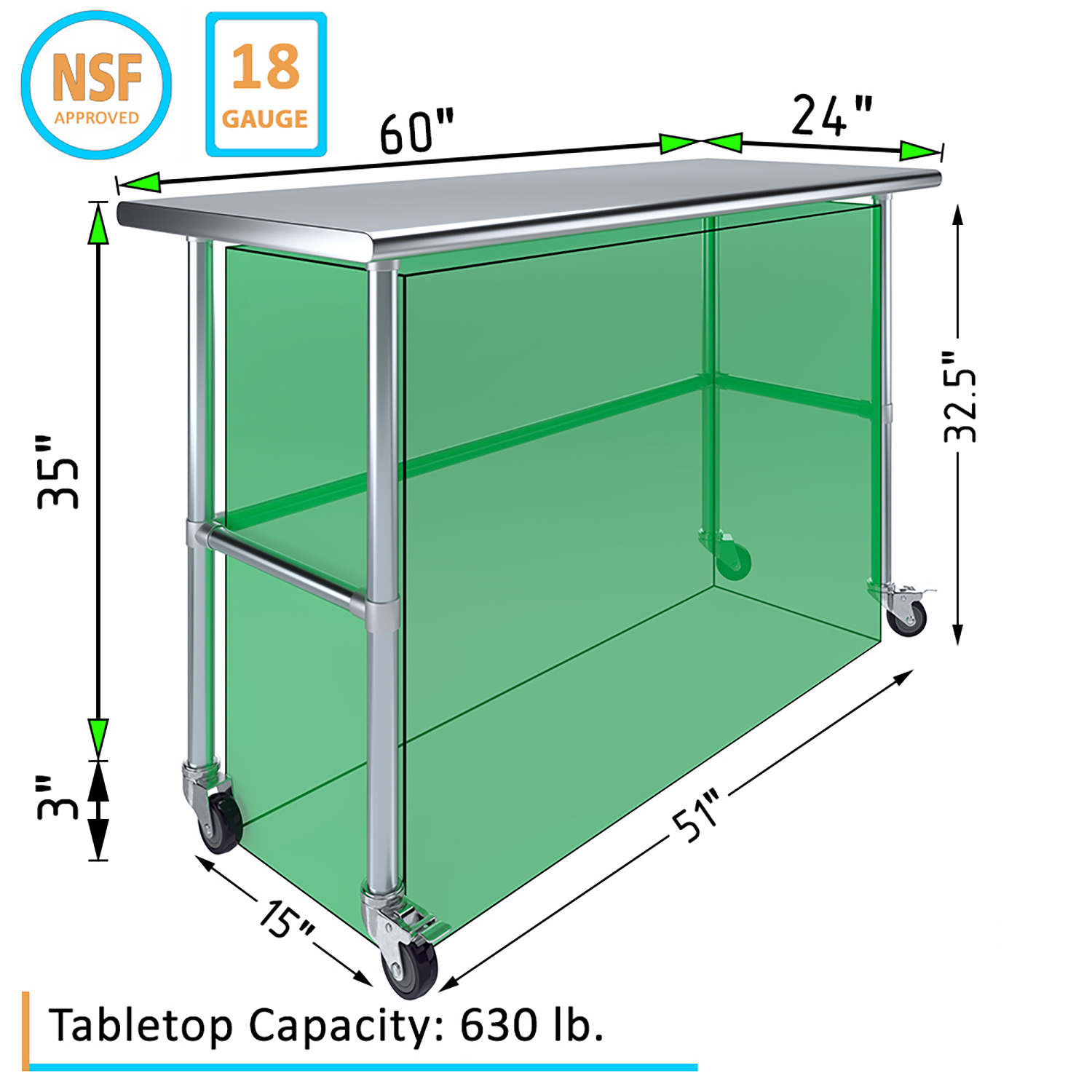Optimize your workspace with the 24″ x 60″ Stainless Steel Work Table featuring an open base and a set of four wheels for enhanced mobility and versatility. This work table is constructed from 18GA/430 stainless steel, ensuring a durable, easy-to-clean surface. Designed for demanding environments such as commercial kitchens, laboratories, and workshops, this table guarantees long-lasting performance and reliability.