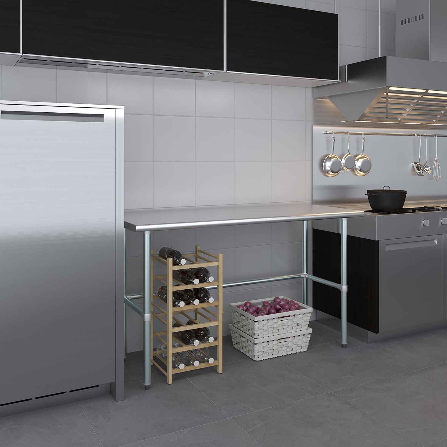The sleek and modern design of this stainless steel work table not only enhances functionality but also adds a touch of professionalism to any workspace. Whether you’re slicing vegetables in a busy kitchen, conducting research in a lab, or assembling components in a workshop, this work table is a reliable and stylish addition to your environment.
