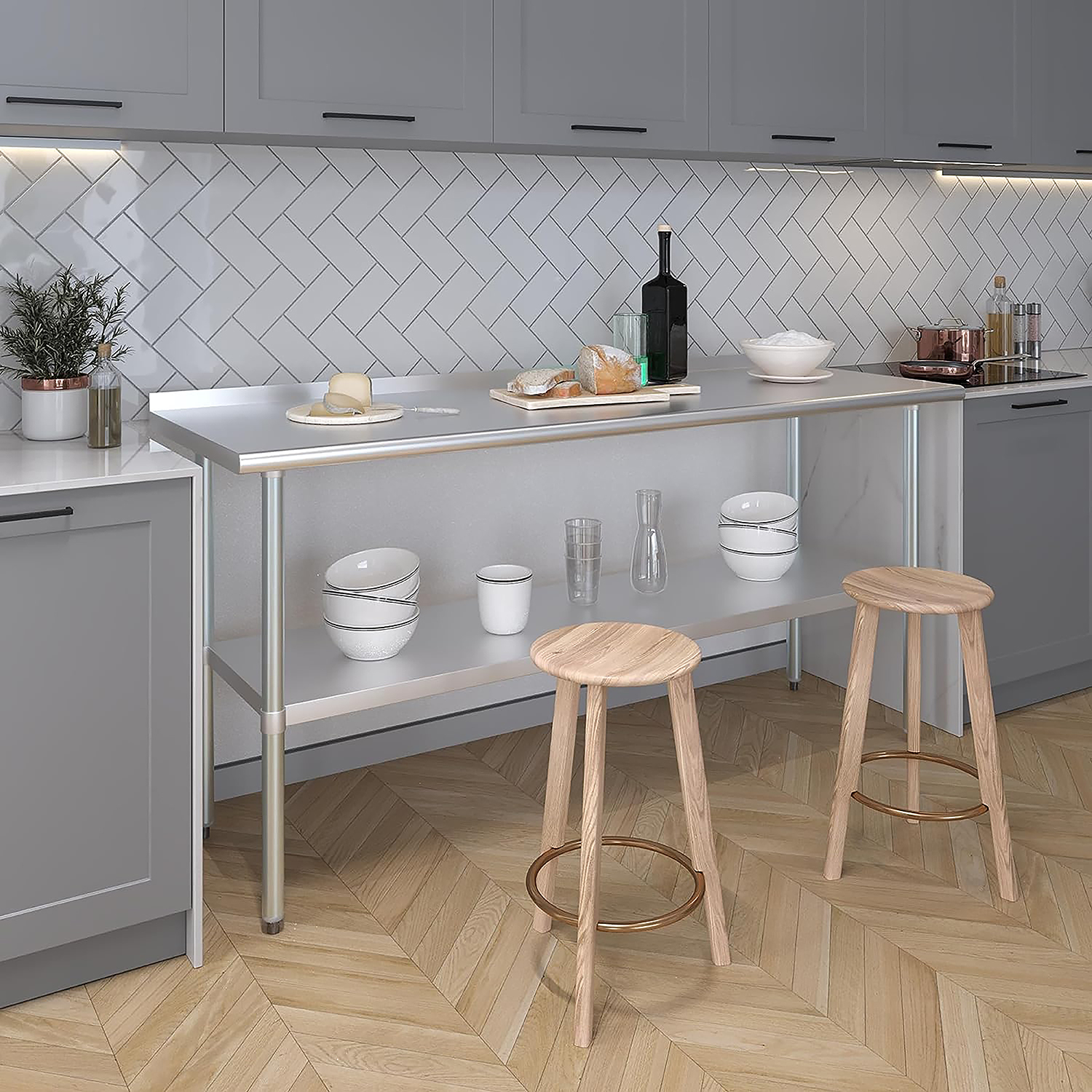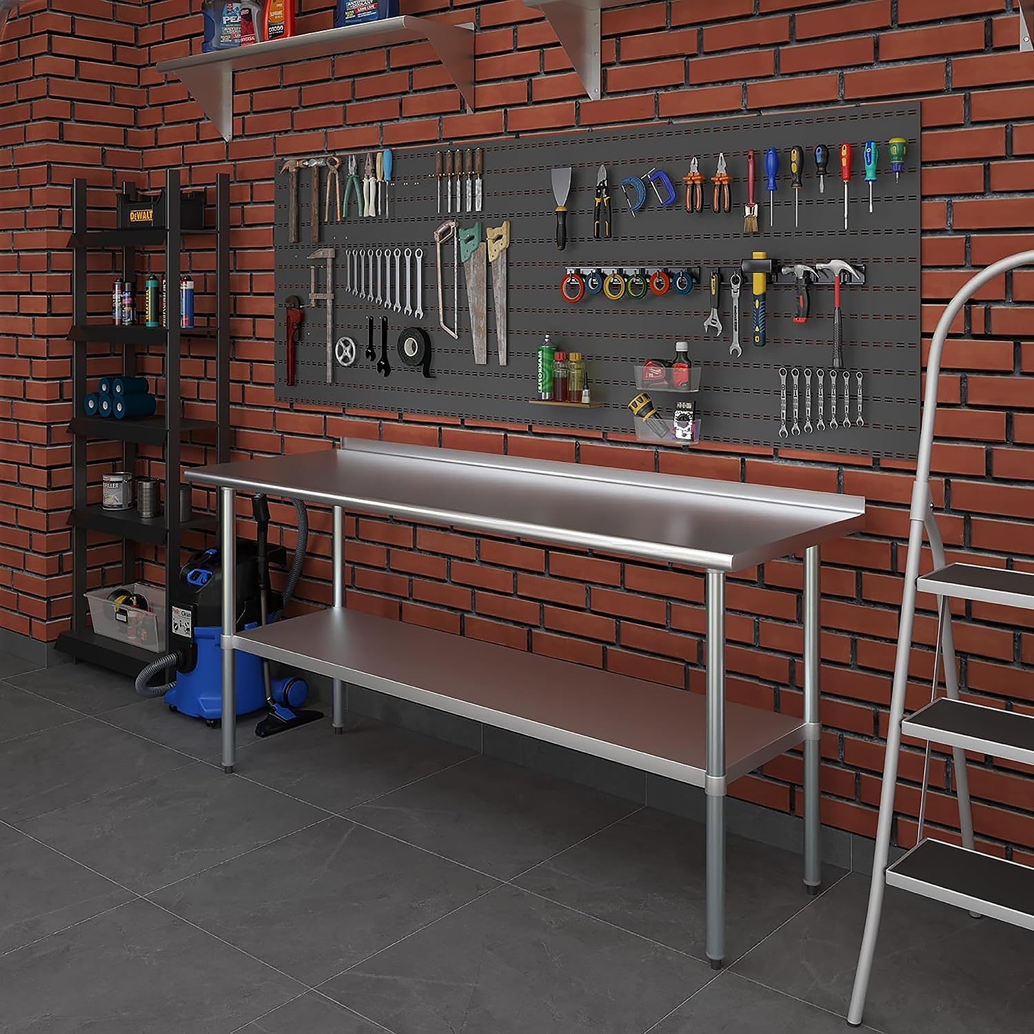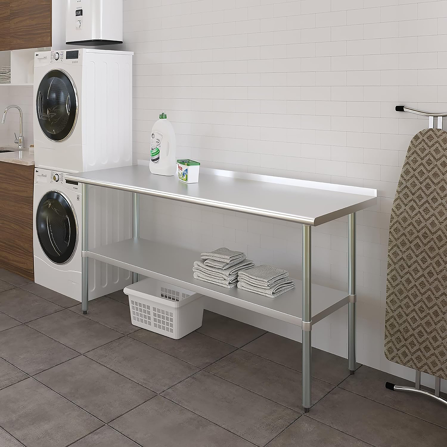 The 1.5″ backsplash is an essential feature, helping to contain spills and splashes, thus protecting your walls and maintaining a tidy and sanitary work area. This makes the table especially suitable for food preparation, as well as other tasks where cleanliness is paramount.