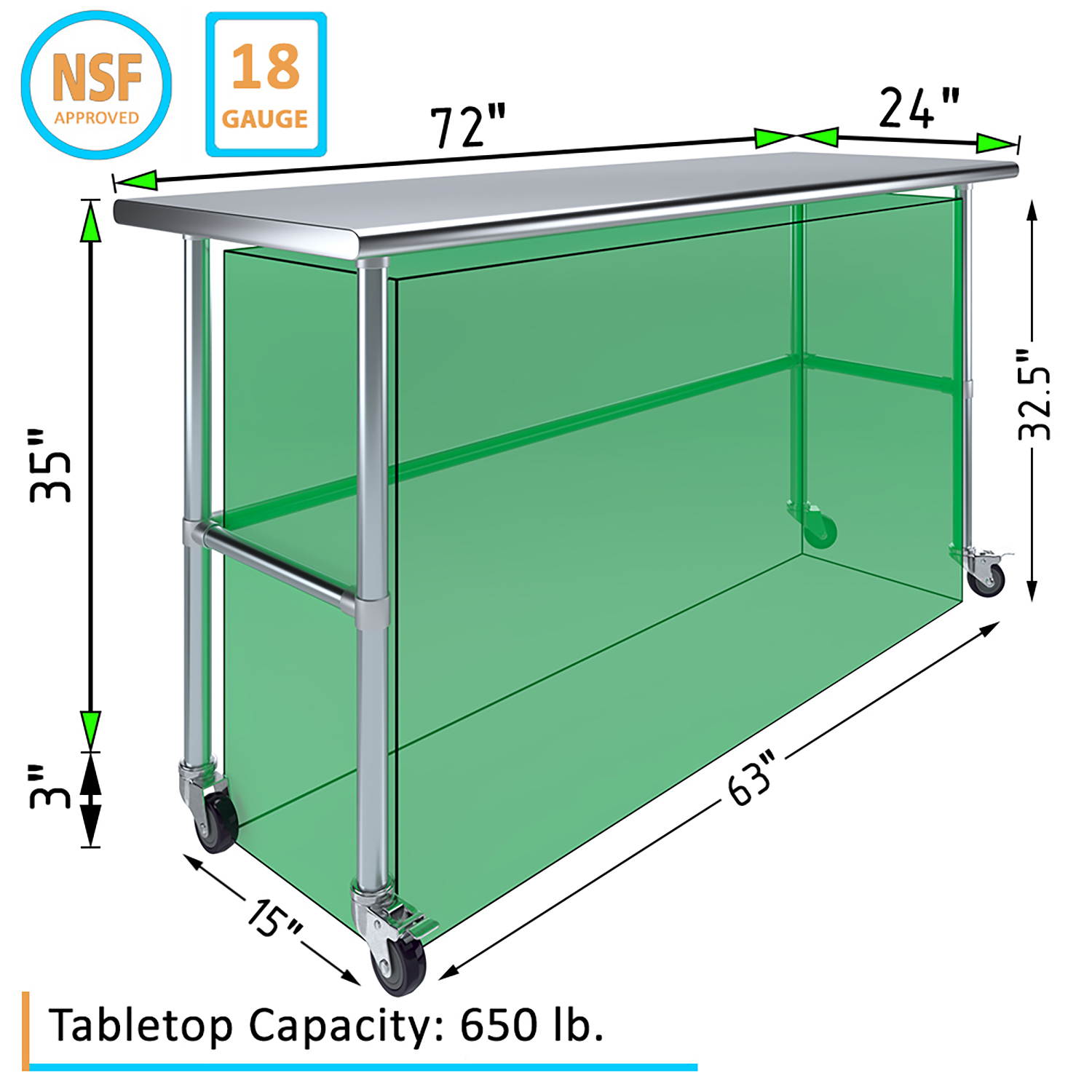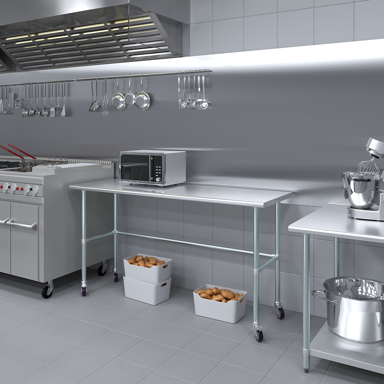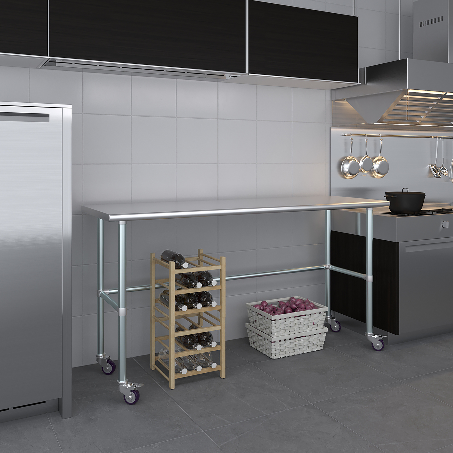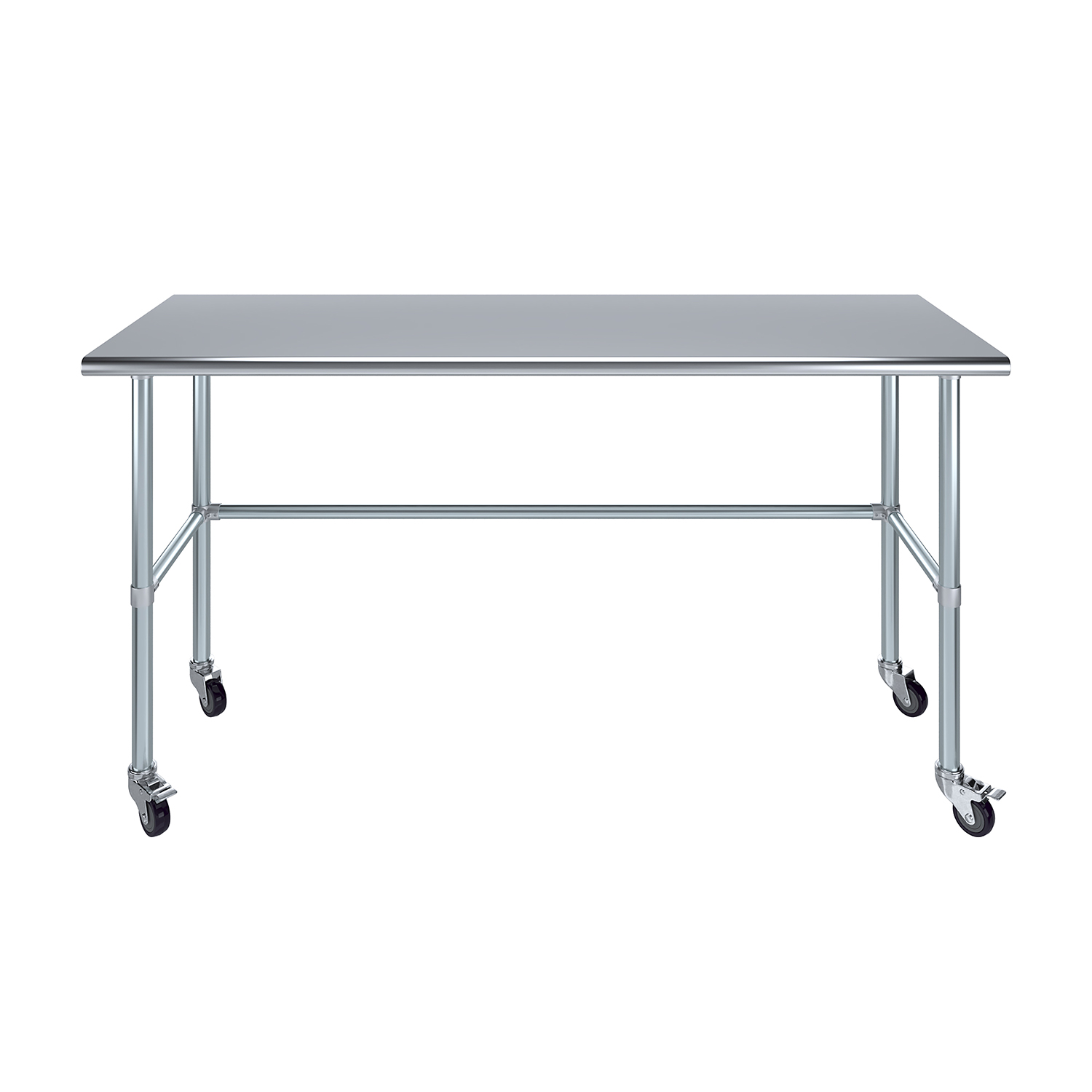 Optimize your workspace with the 24″ x 72″ Stainless Steel Work Table featuring an open base and a set of four wheels for enhanced mobility and versatility. This work table is constructed from 18GA/430 stainless steel, ensuring a durable, easy-to-clean surface. Designed for demanding environments such as commercial kitchens, laboratories, and workshops, this table guarantees long-lasting performance and reliability.
