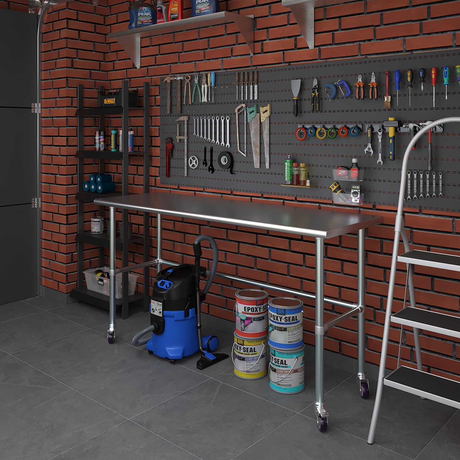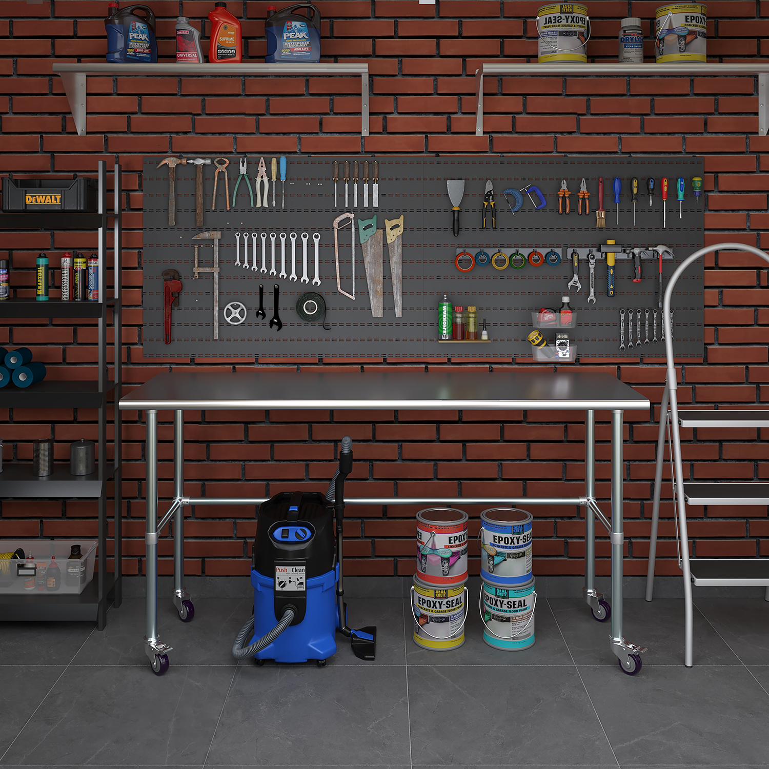 Equipped with a set of four wheels, this work table offers unparalleled mobility. The wheels are designed to glide smoothly across different surfaces, allowing you to reposition the table effortlessly as needed. This mobility is particularly beneficial in dynamic environments where flexibility and adaptability are crucial. Additionally, the wheels are equipped with locking mechanisms to ensure stability and prevent unwanted movement during use.