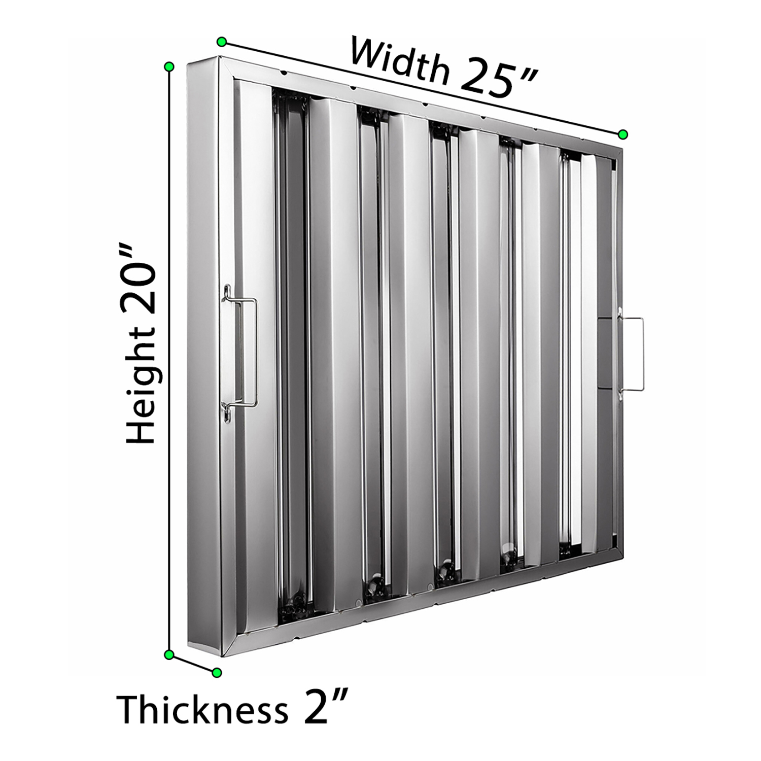Enhance your kitchen ventilation system with our 25″ Width X 20″ Height X 2″ Thickness Stainless Steel Hood Filter, available in a convenient pack of 6. These filters are crafted from 430 stainless steel, offering exceptional durability and long-lasting performance. Designed to effectively trap grease, smoke, and particulates, these filters ensure a cleaner, safer, and more hygienic kitchen environment.