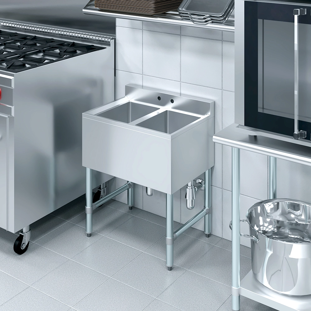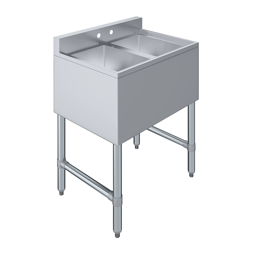 Featuring two separate compartments, this underbar sink allows for effective multitasking—such as washing in one bowl and rinsing or sanitizing in the other—helping to streamline workflow and meet health code requirements. Each compartment is deep enough to handle glassware, utensils, and small wares with ease.