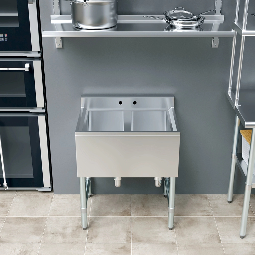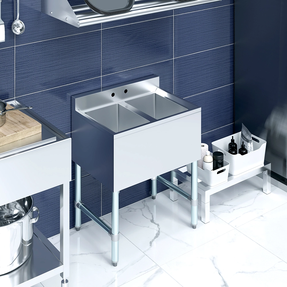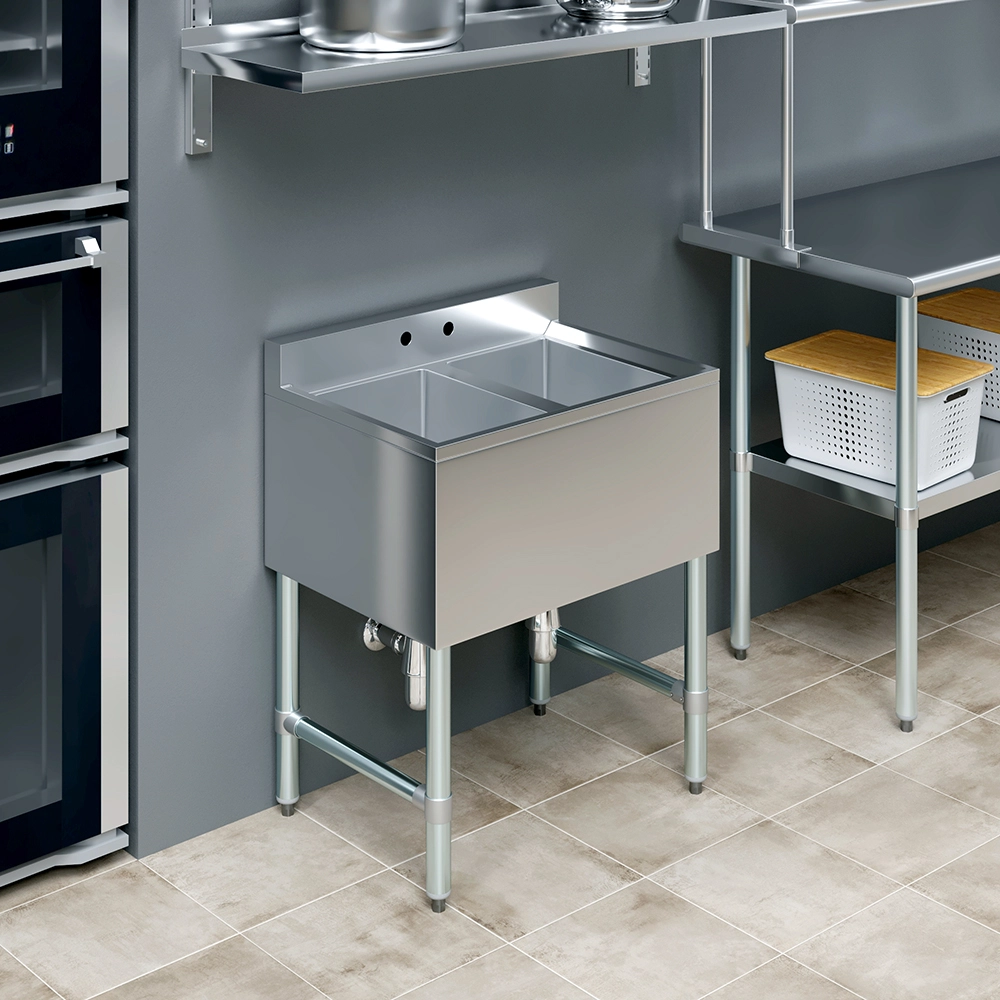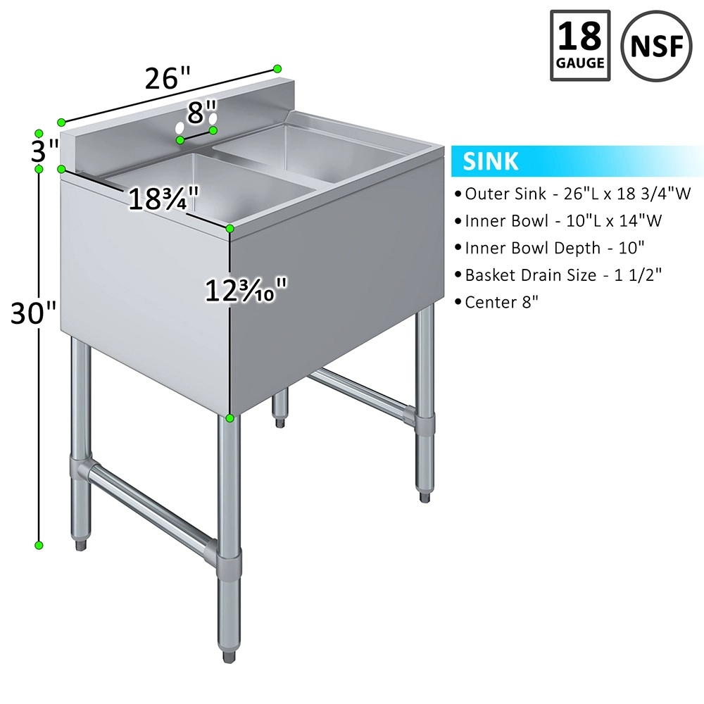 The 26 1/2 in. x 19 in. Two Compartment Underbar Sink is a space-saving and highly functional solution designed for commercial bars, restaurants, and beverage service areas. Constructed from durable, 20GA/304 stainless steel, this sink is built to withstand the demands of high-volume environments while remaining easy to clean and maintain. Its sleek, compact design fits neatly under the bar, making it ideal for tight spaces where efficiency is key.
