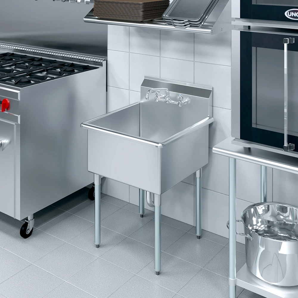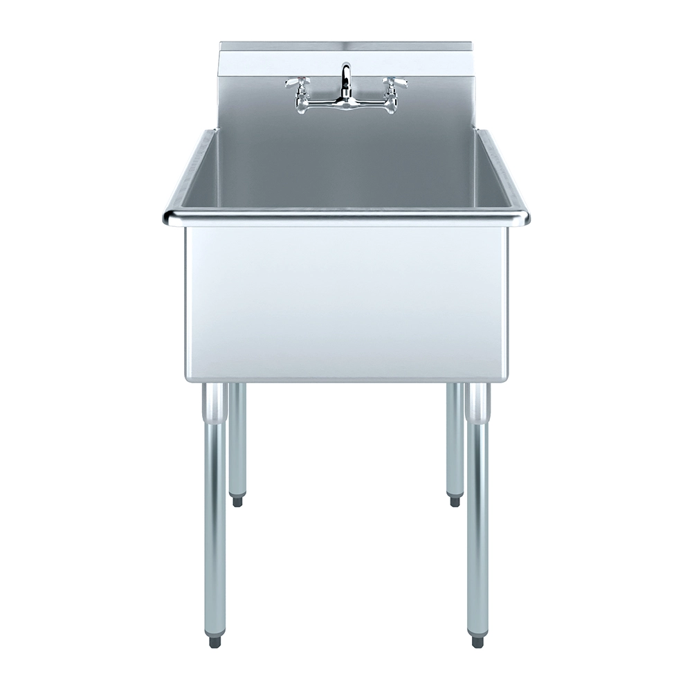 The spacious basin provides ample room for tackling a wide range of cleaning tasks, from washing large pots and pans to rinsing tools or equipment. Measuring 27 inches by 27 1/2 inches, the sink’s generous dimensions make it ideal for both residential and commercial use. The deep bowl minimizes splashes and contains water effectively, ensuring a cleaner workspace.