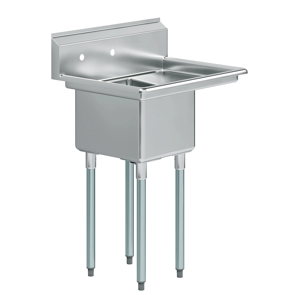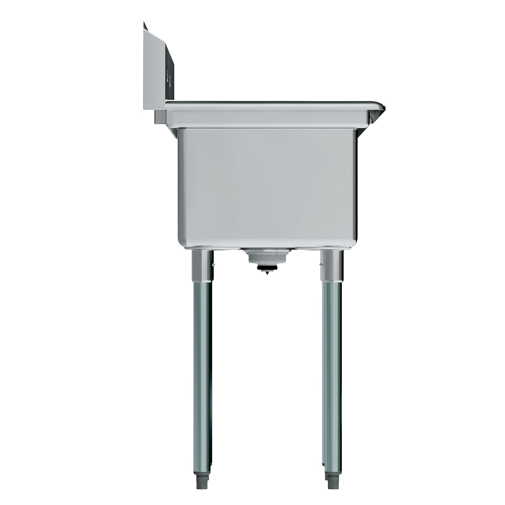 The spacious one-compartment sink offers ample room for washing large pots, pans, utensils, and other items, making it ideal for high-volume use. Its deep bowl design helps contain water and reduce splashes, maintaining a cleaner and more organized workspace. The durable construction ensures stability and reliability, making it suitable for heavy-duty applications.